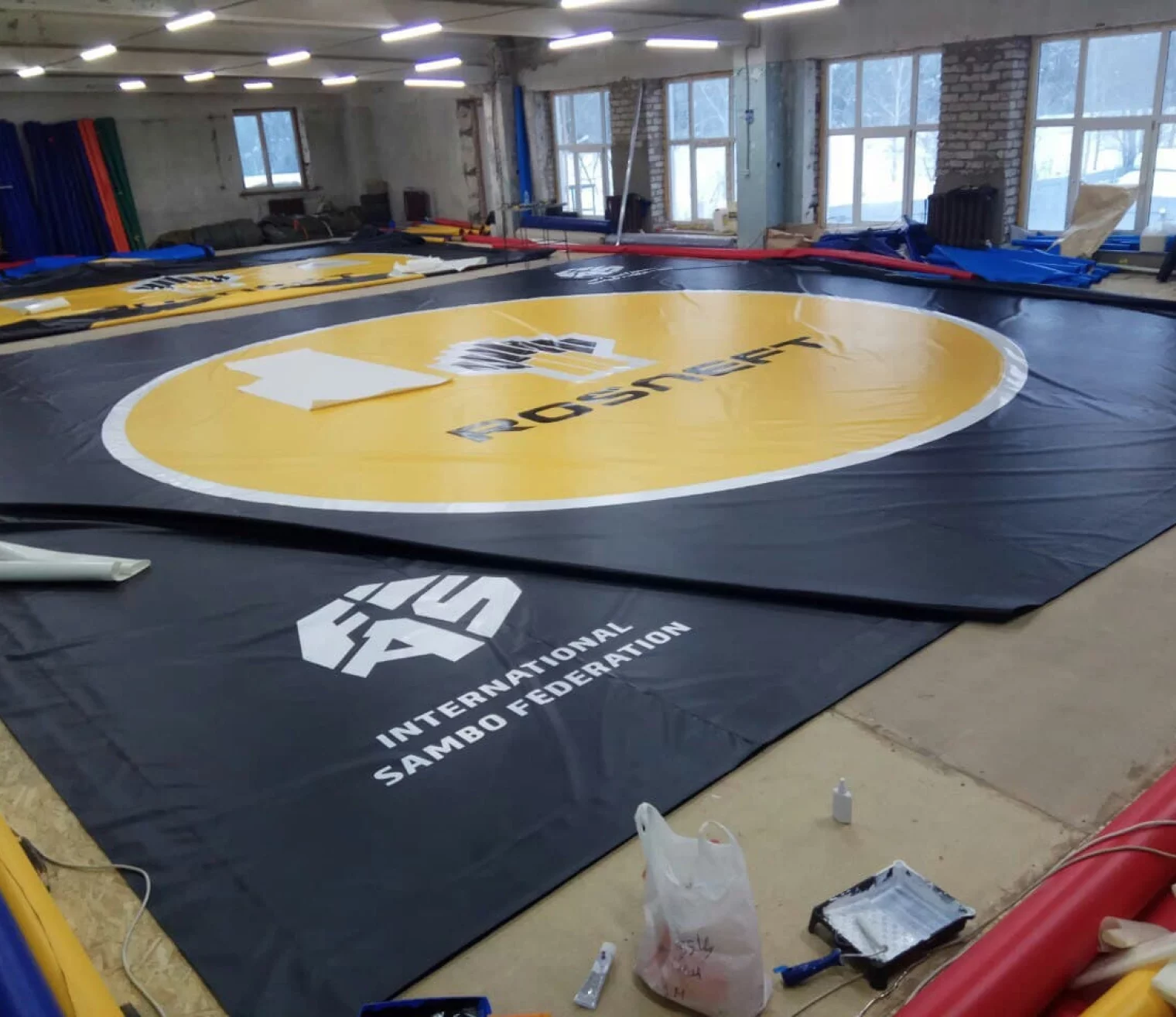 Производим спортивные покрытия индивидуально под ваши задачи от небольших ковров в зал до поставок на чемпионаты мира.