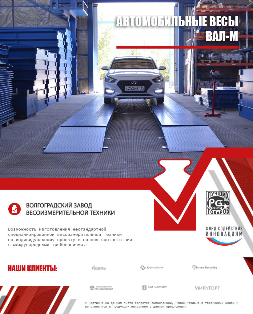 Завод предлагает широкий номенклатурный ряд продукции: автомобильные, вагонные весы, весы для взвешивания животных, ветеринарные станции, бункерные весы, дозаторы, платформенные весы различного назначения, монорельсовые и конвейерные весы, а также ленточные весовые транспортеры.