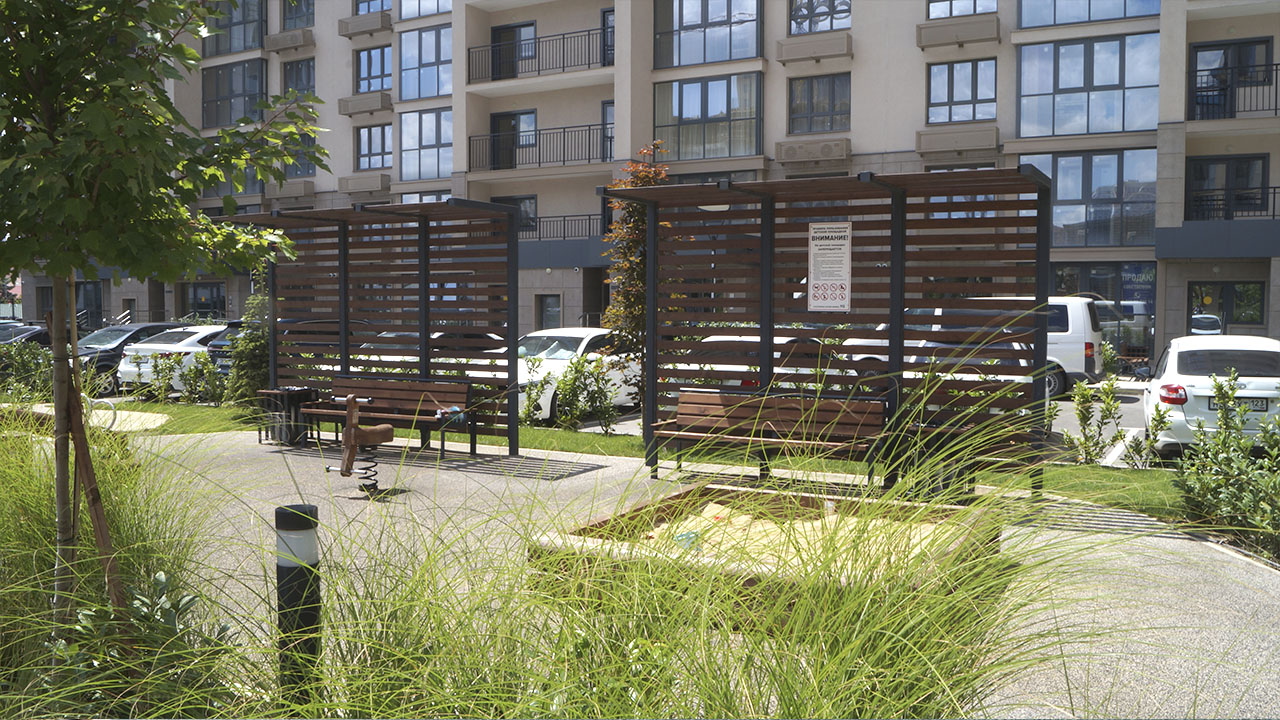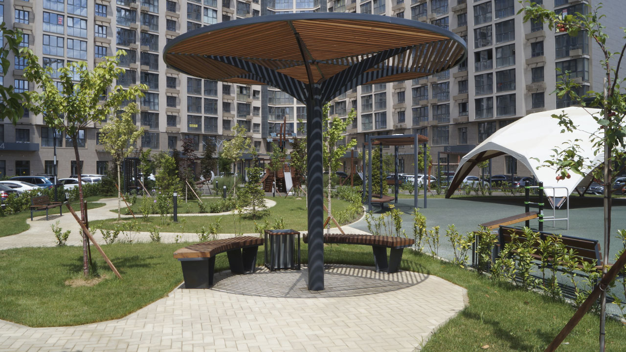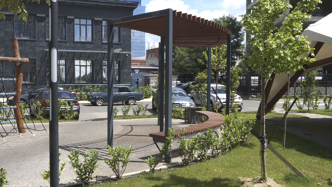 Собственное производство с установкой малых архитектурных форм для жилых комплексов, парков, городских пространств: скамейки, урны, перголы, навесы, беседки, качели, шезлонги, вело парковки, площадки для ТБО, площадки для собак и многое другое для благоустройства территорий.
