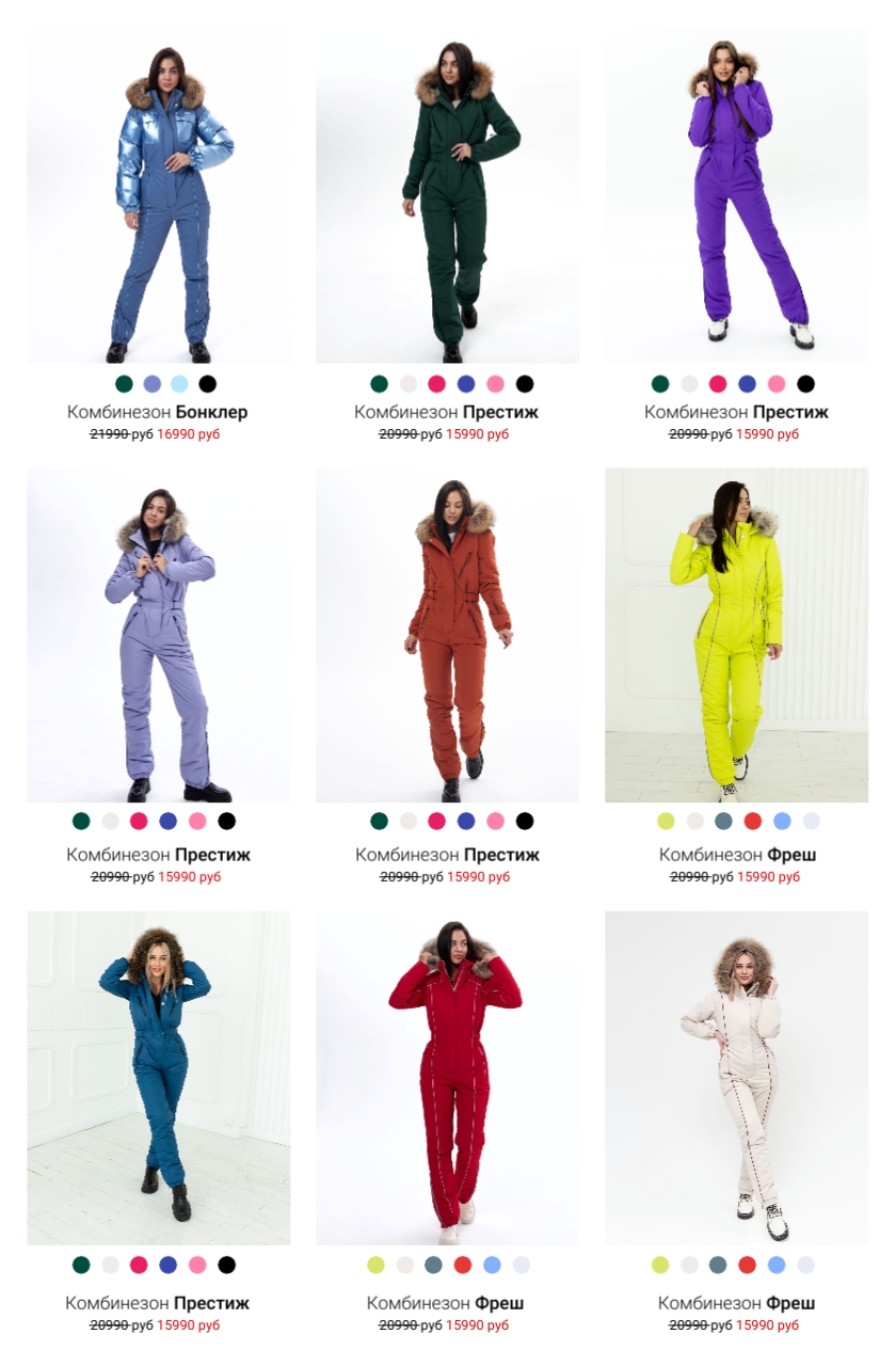 В коллекции бренда представлены 3 модели комбинезонов в более чем 30 вариантах оттенков - от универсальных, до яркого неона и принтов, которые мы разрабатываем сами.