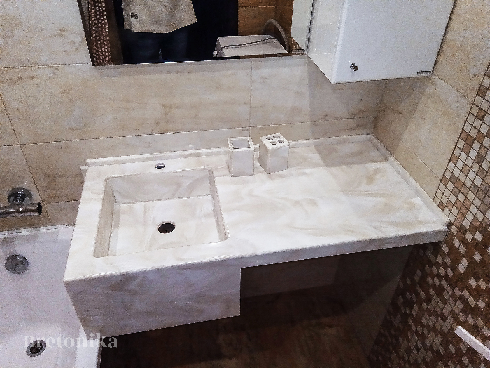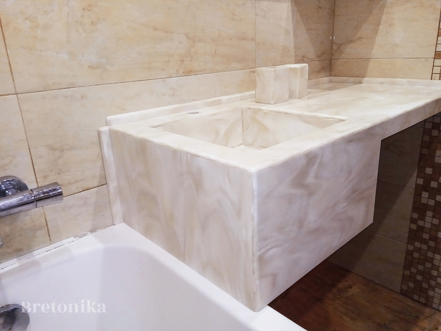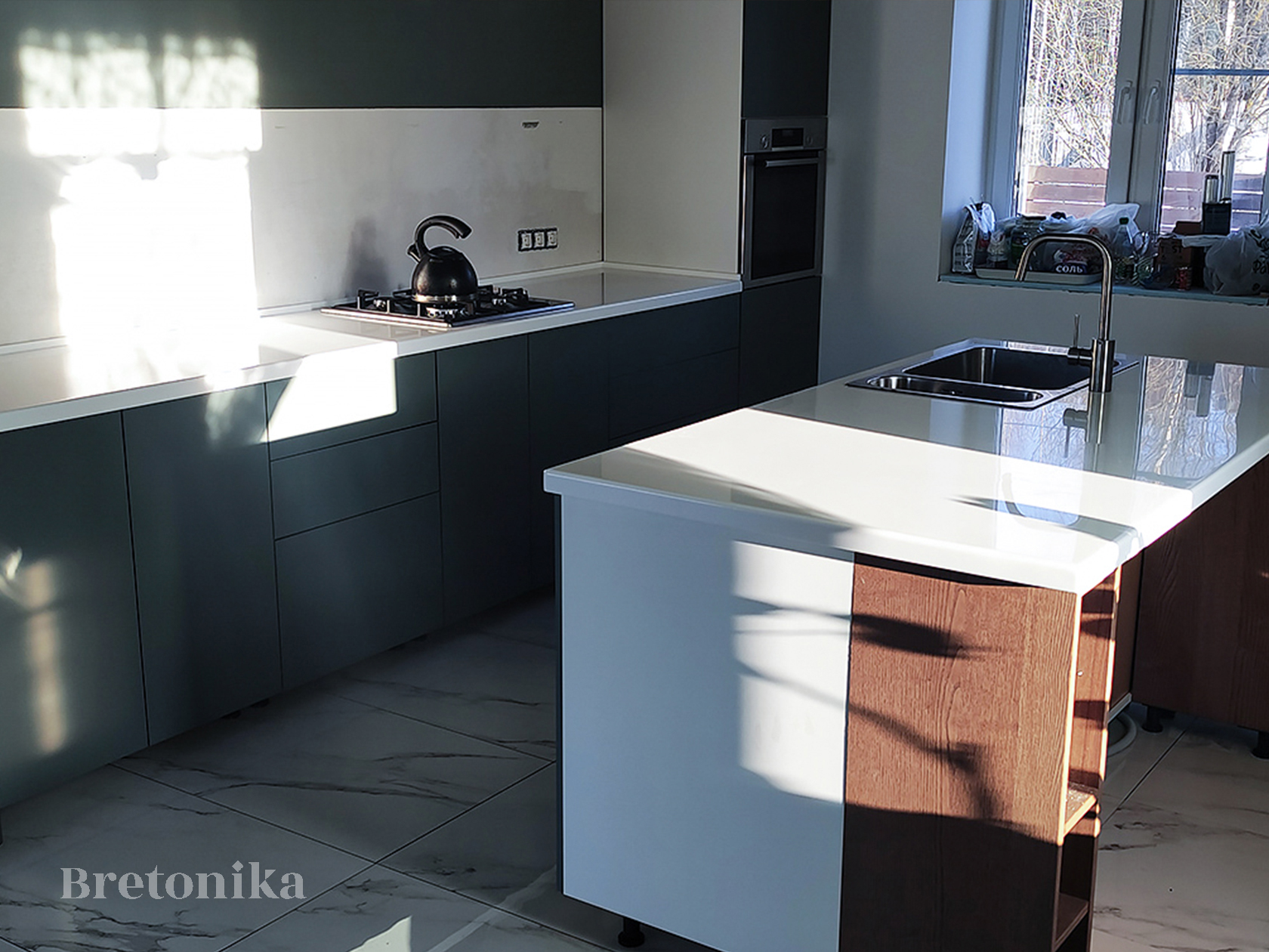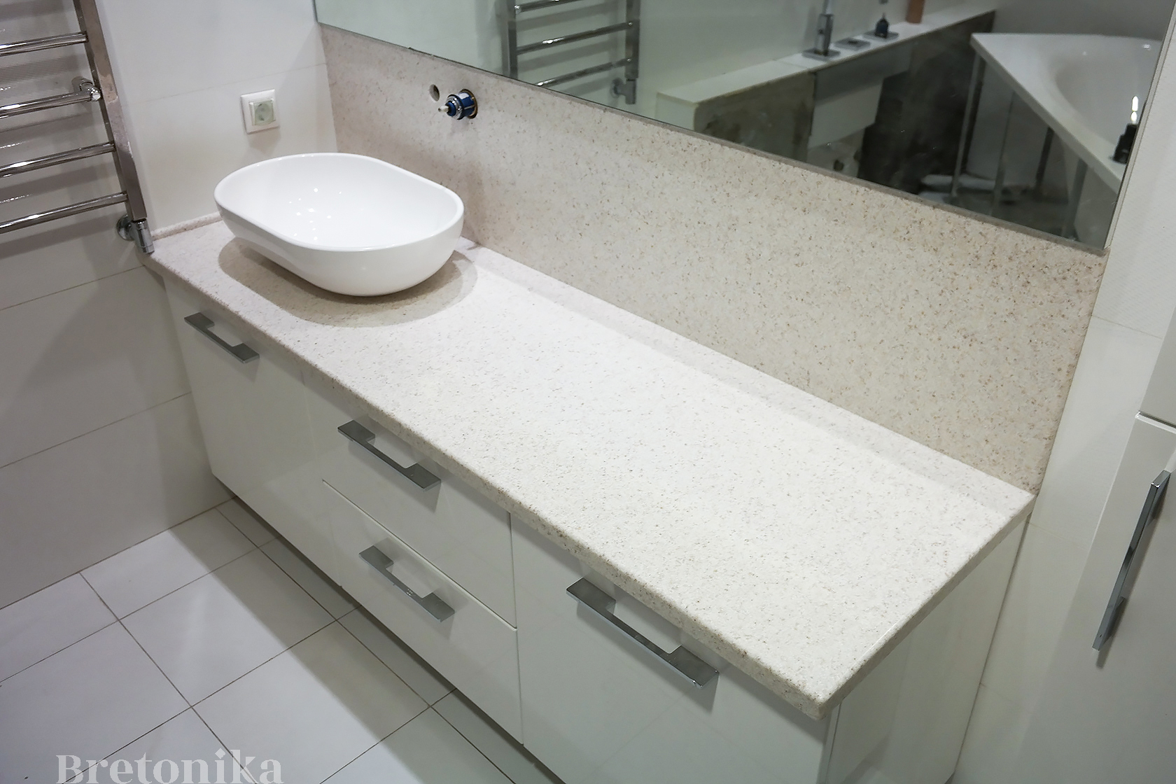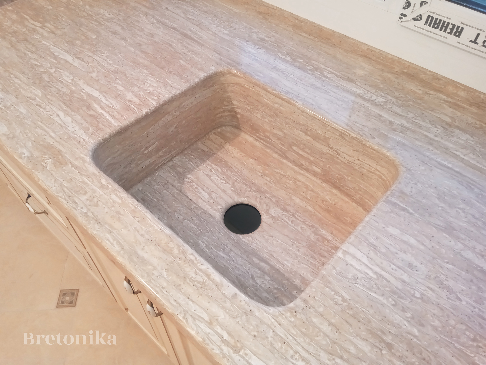 Bretonika (Бретоника) - производство изделий из искусственного камня, мы изготавливаем столешницы, фартуки, барные стойки, подоконники и откосы, столы и острова, настенные панели, ресепшн, раковины и мойки, отделка санузлов и SPA, экраны.