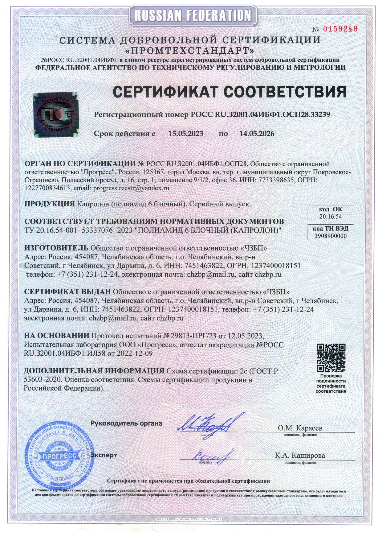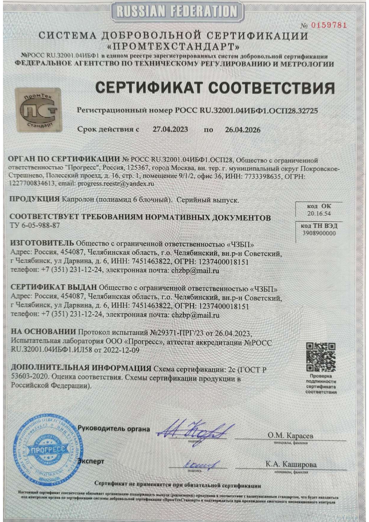 Компания по производству и реализации блочного полиамида по ТУ 20.16.54-001-ОКПО-2023 (РФ) и ТУ 6-05-988-87 (СССР). С 1970-х годов на территории СССР, а в настоящий момент на территории РФ, полиамид 6 блочный распространяется под тривиальным названием КАПРОЛОН (реже КАПРОЛИТ). В западной терминологии обозначается как MC NYLON или CAST NYLON.