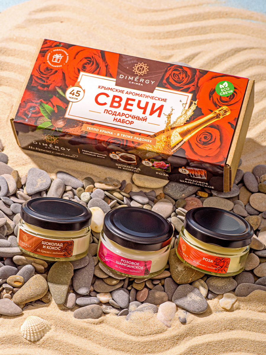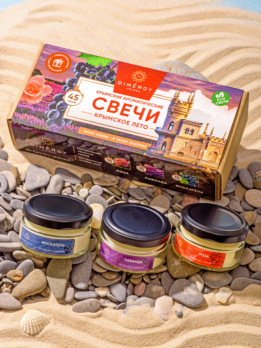 Набор КРЫМСКОЕ ЛЕТО (аромасвечи: Роза + Лаванда + Мускатель)