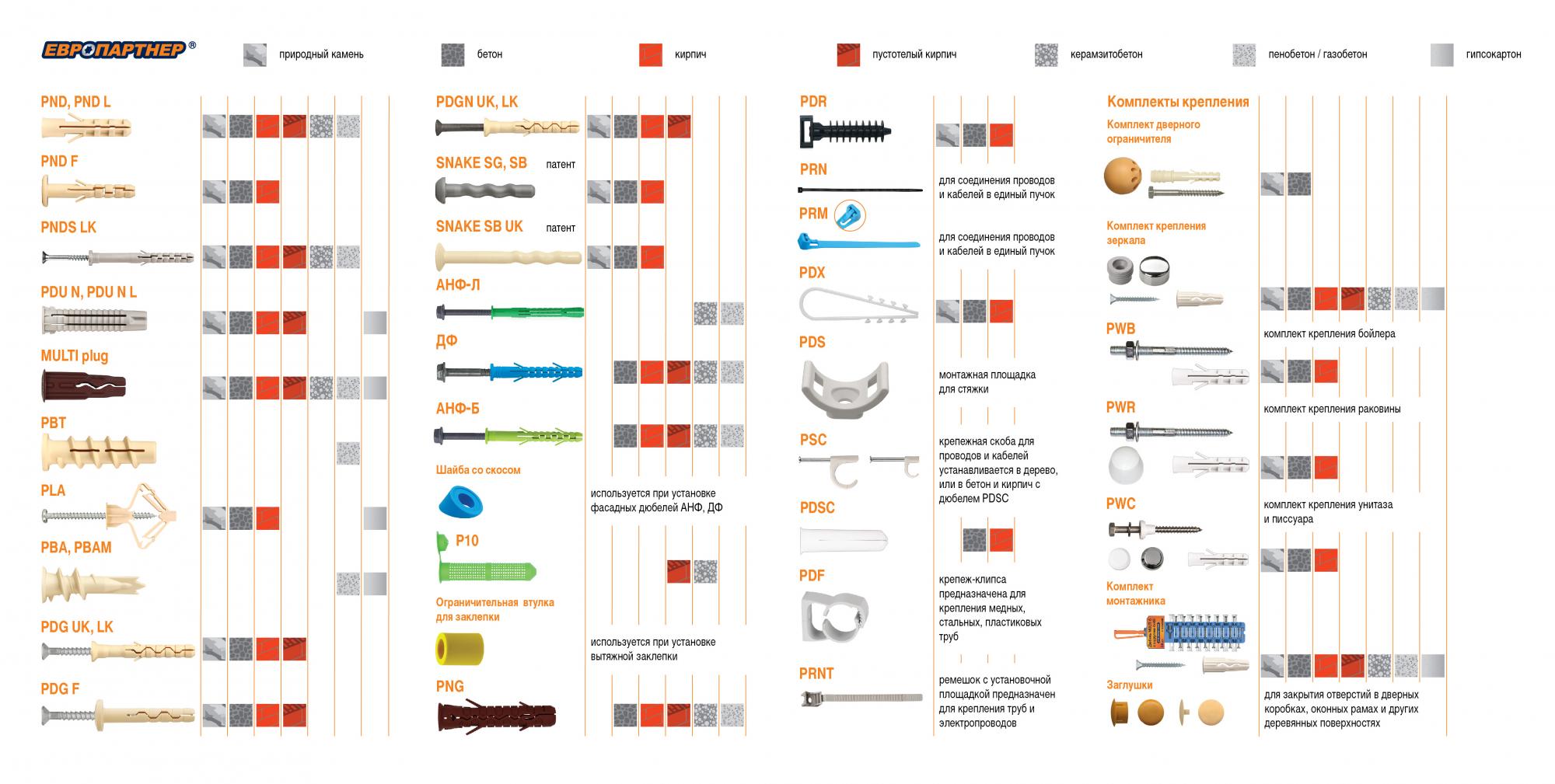 Производство нейлоновых дюбелей осуществляется на высокотехнологичном оборудовании методом литья пластмассы под давлением.Почему нейлон? Нейлон - самый эффективный материал для изготовления дюбелей.Нейлон это:Прочность и надежность.Широкий диапазон температур.Высокие нагрузки.Длительный срок эксплаутации.Внутренние и наружные работы.В ассортименте продукции завода более 70 типоразмеров крепежных изделий из полиамида, полипропилена и полиэтилена.