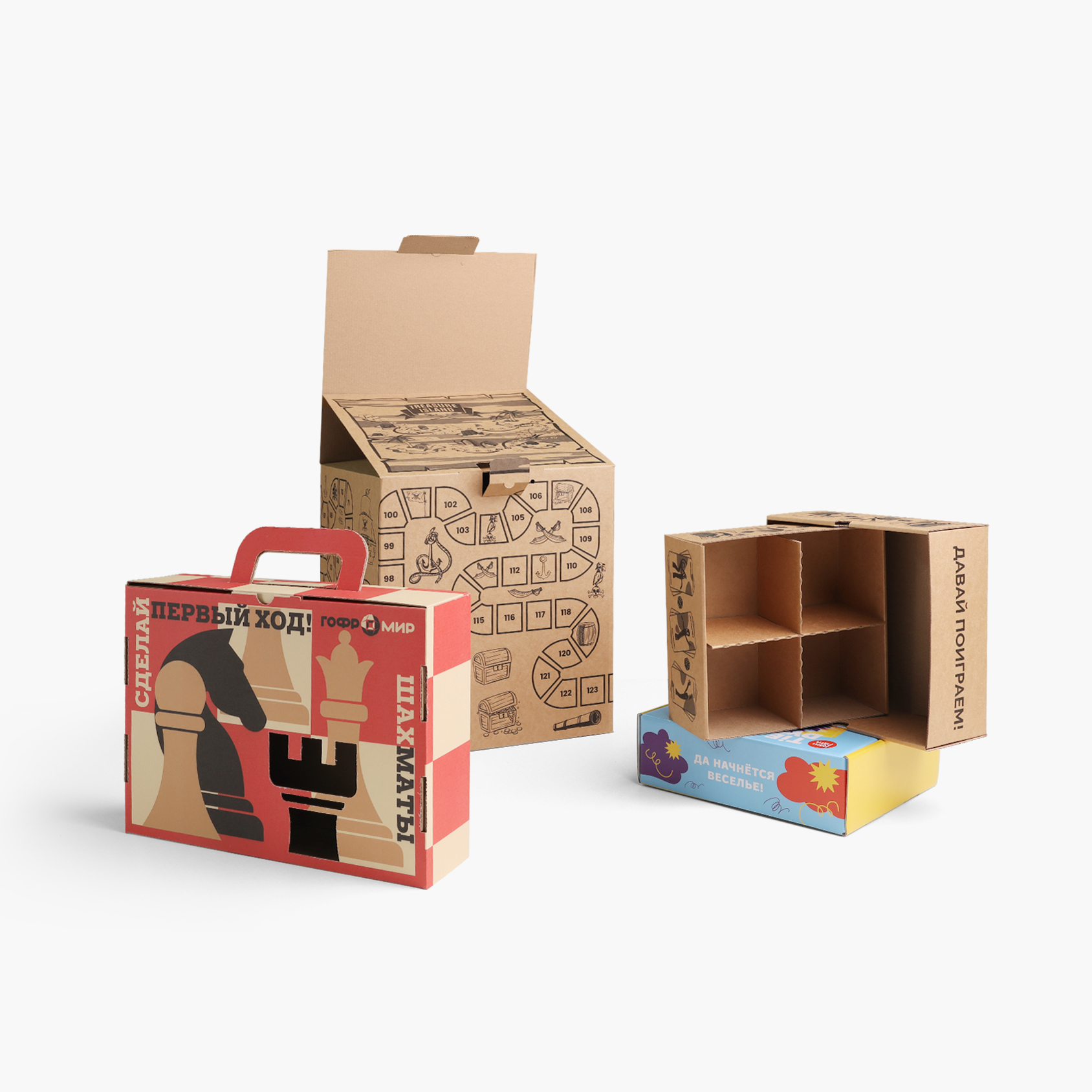 В производстве используются все виды картона: одно-, двух-, трёх-, пятислойный и микрогофрокартон. Мы предлагаем три вида печати на буром и белом картоне: флексопечать, офсетную и цифровую. Благодаря этому клиенты получают упаковку, полностью отвечающую их задачам — от стандартных решений до премиального оформления.
