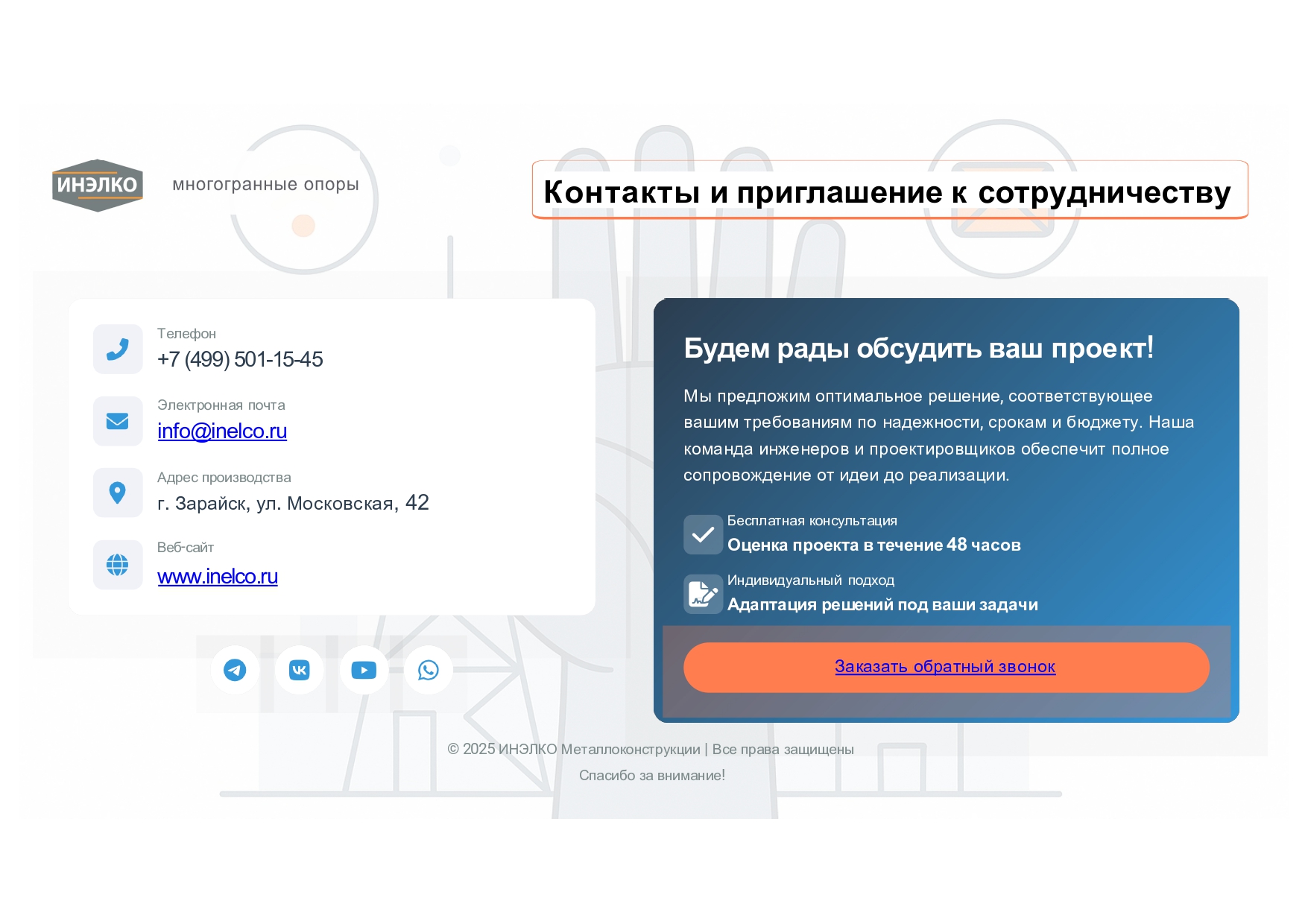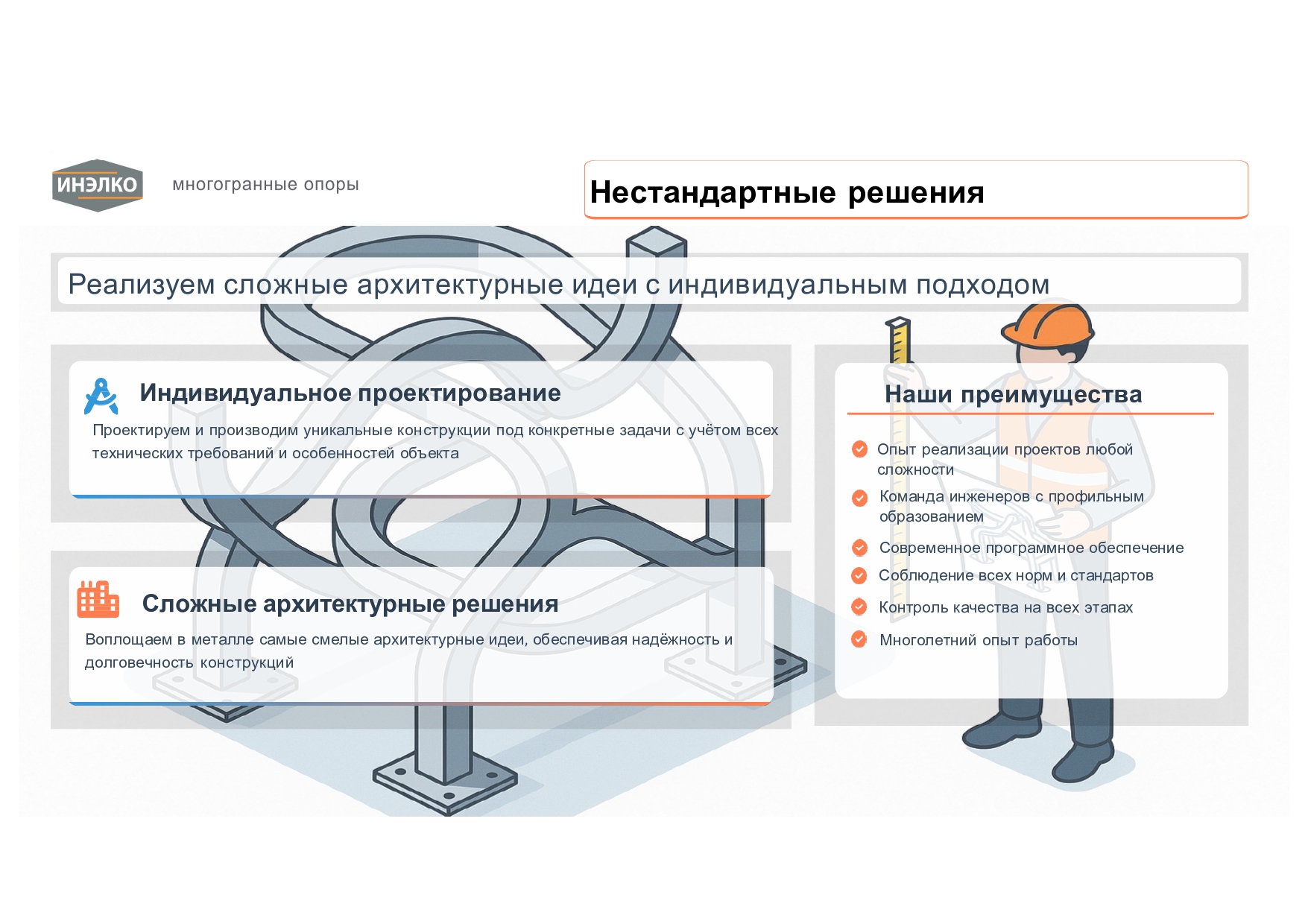Специализируемся на проектировании и производстве строительных металлоконструкций для инфраструктурных и промышленных объектов.