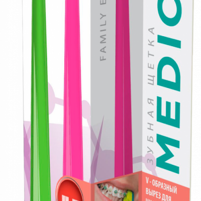 Зубная щетка МЕДИК 2 шт, ДЛЯ БРЕКЕТ-СИСТЕМ,средняя,зеленый+розовый, биоразлагаемая