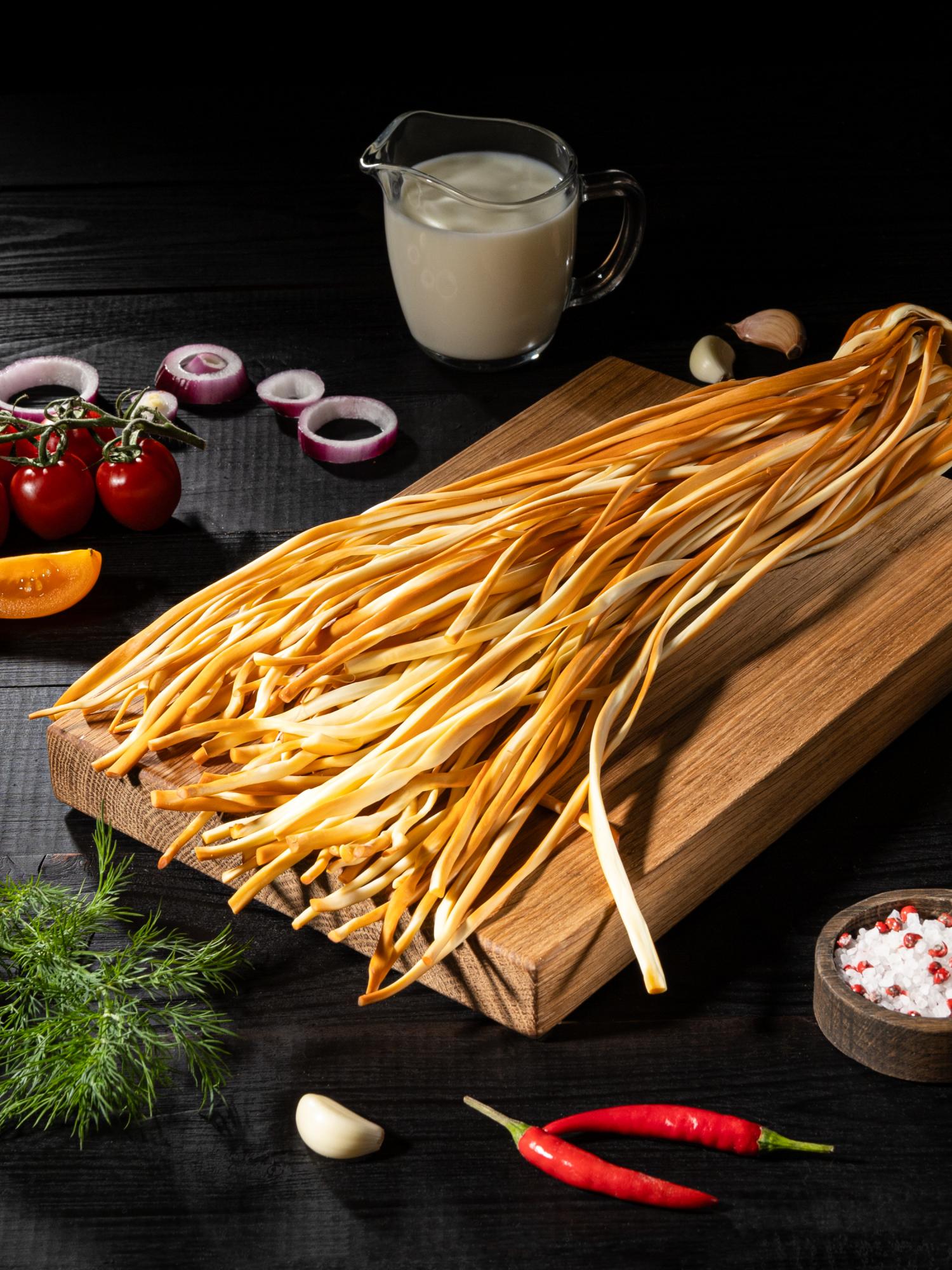 Сыр Спагетти (нити): Уникальная форма и нежный вкус делают его идеальным для оригинальных салатов и закусок.