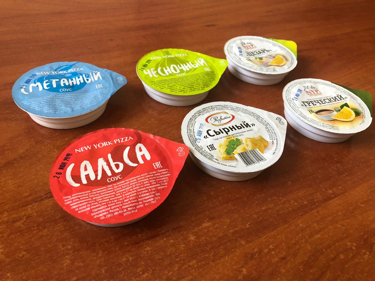• Порционные соусы можем сделать с вашим логотипом.