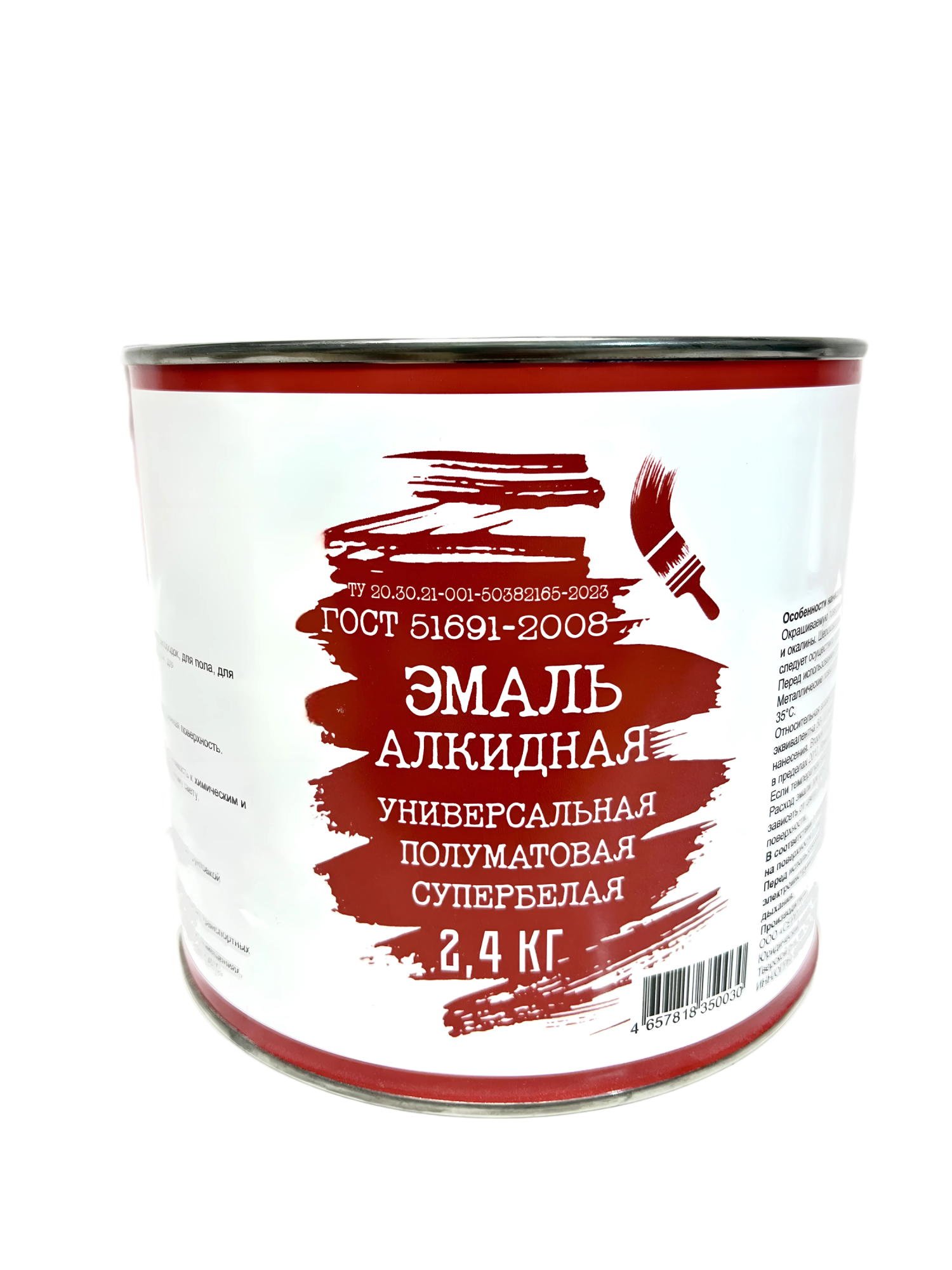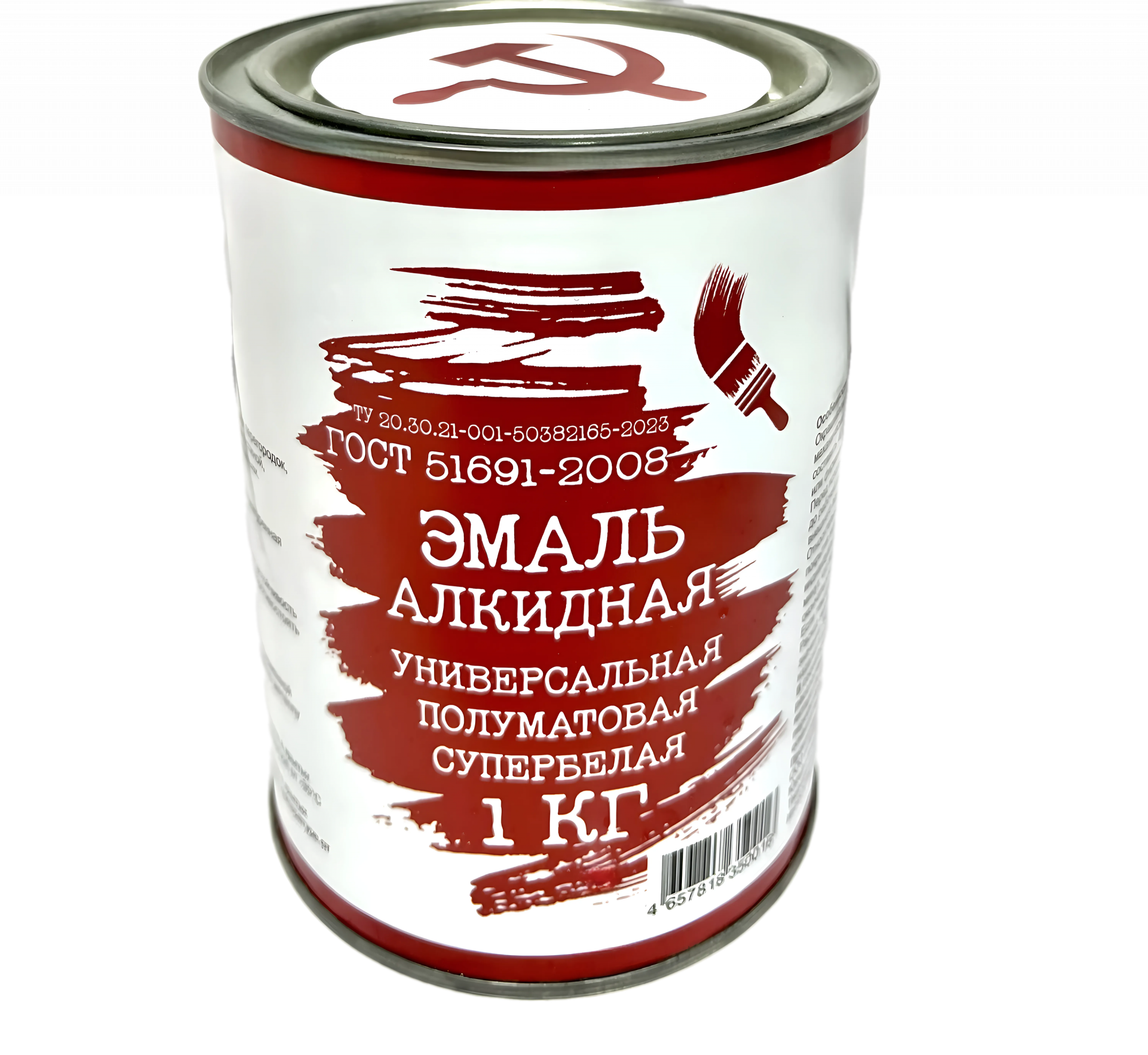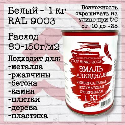 Эмаль алкидная универсальная супербелая полуматовая 1 кг (можно колеровать)