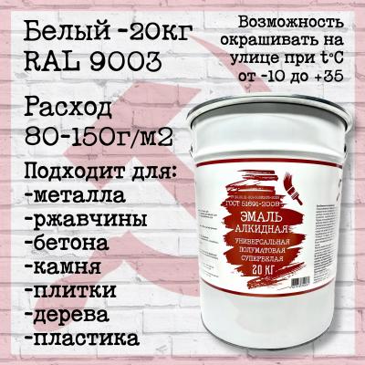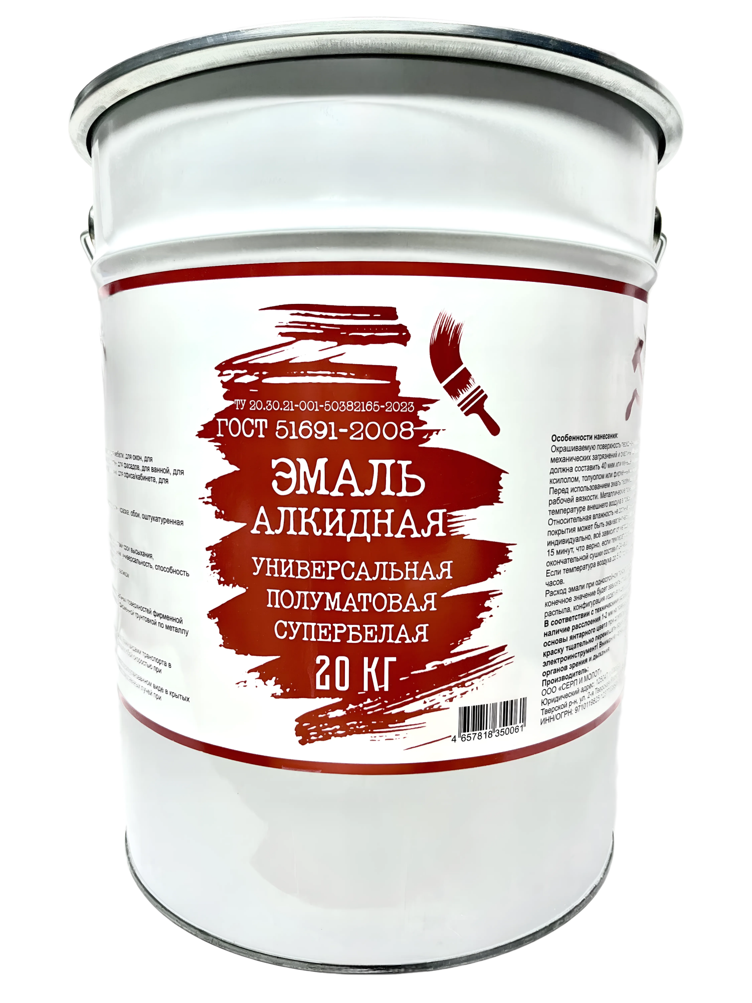 Эмаль алкидная универсальная супербелая полуматовая 20 кг (можно колеровать)
