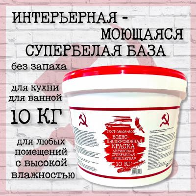 Интерьерная Моющаяся краска 10 кг матовая супербелая водорастворимая база (можно колеровать)