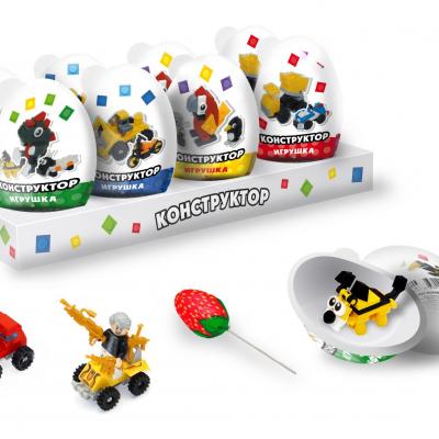 Пластиковое яйцо с карамелью и игрушкой «Конструктор» 4*8*14г