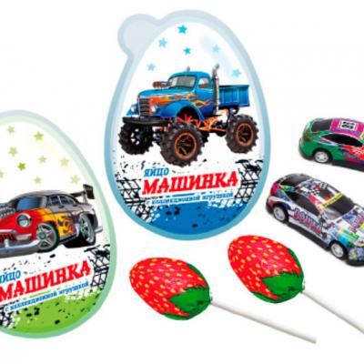 Пластиковое яйцо с карамелью и игрушкой «Машинки» 4*8*28г