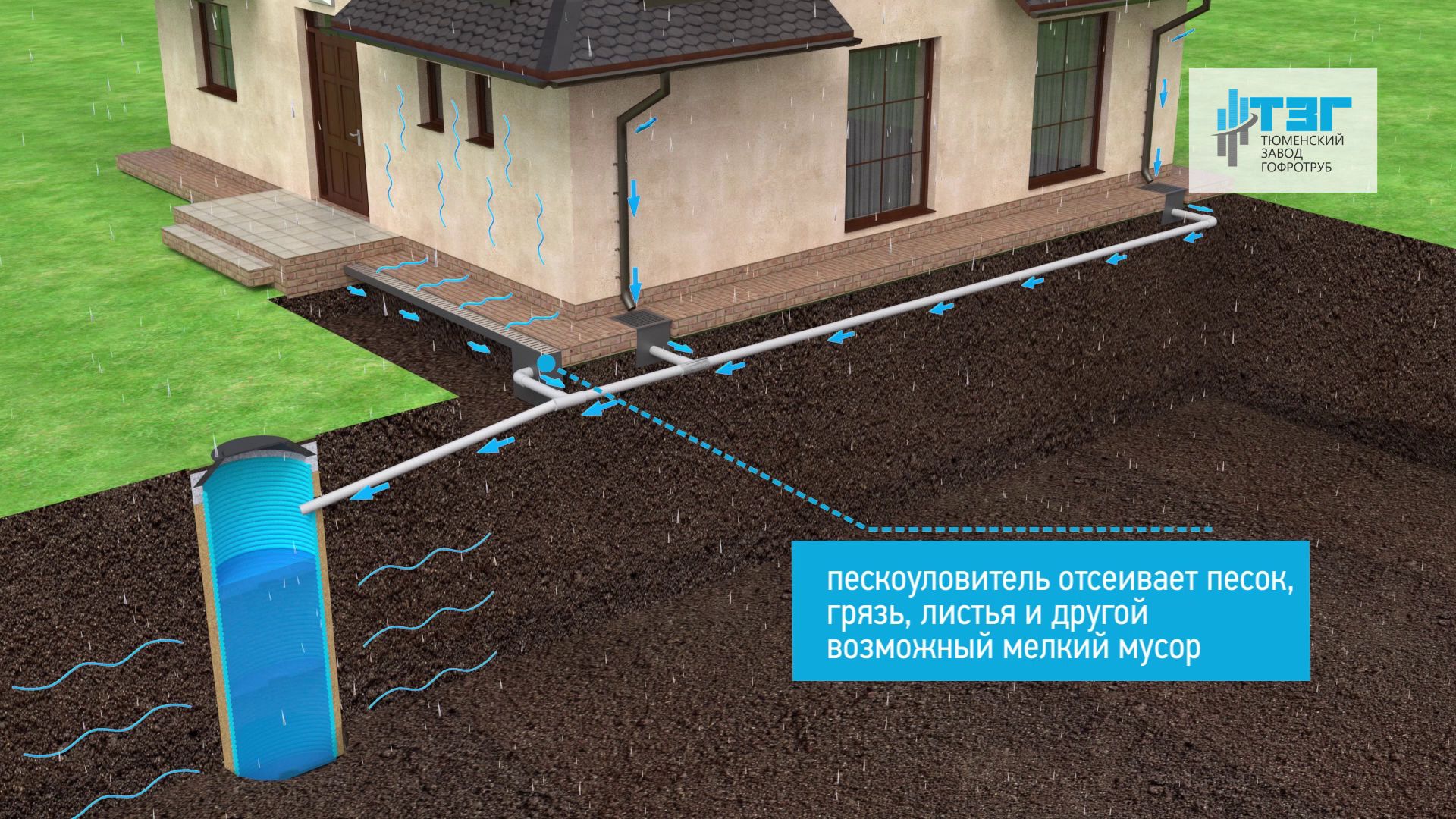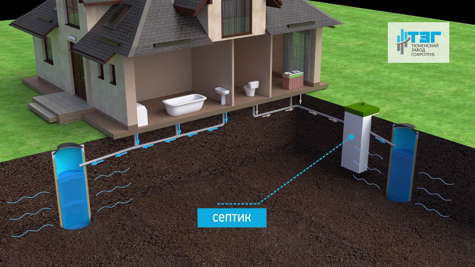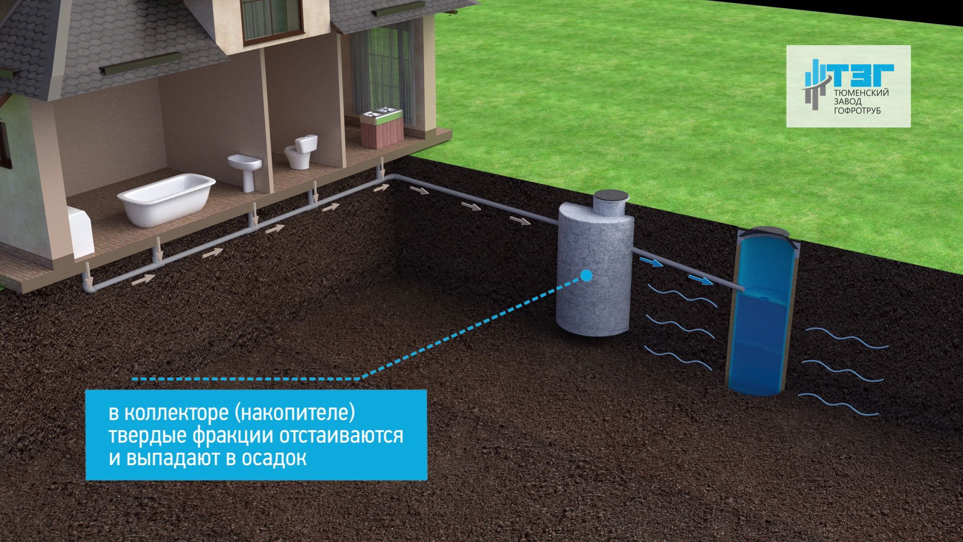 Собственное производство металлических спиральновитых гофрированных труб, а также подземных резервуаров для технического запаса воды.
