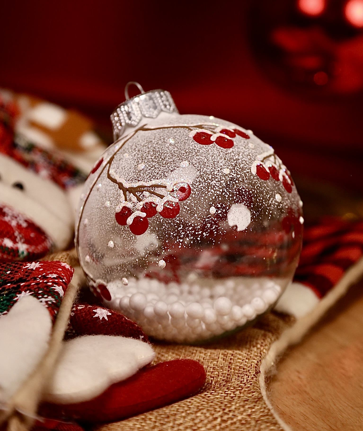 - шары и игрушки с бусинами, стразами, глиттером, тканевым декором;