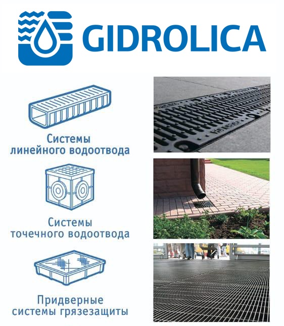 Компания Евротрейдинг занимается производством пластиковых и бетонных систем поверхностного водоотвода под торговой маркой Gidrolica.