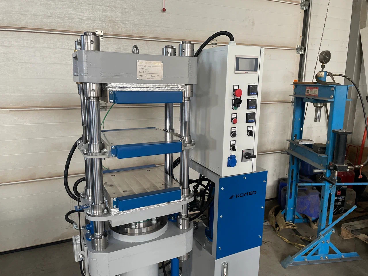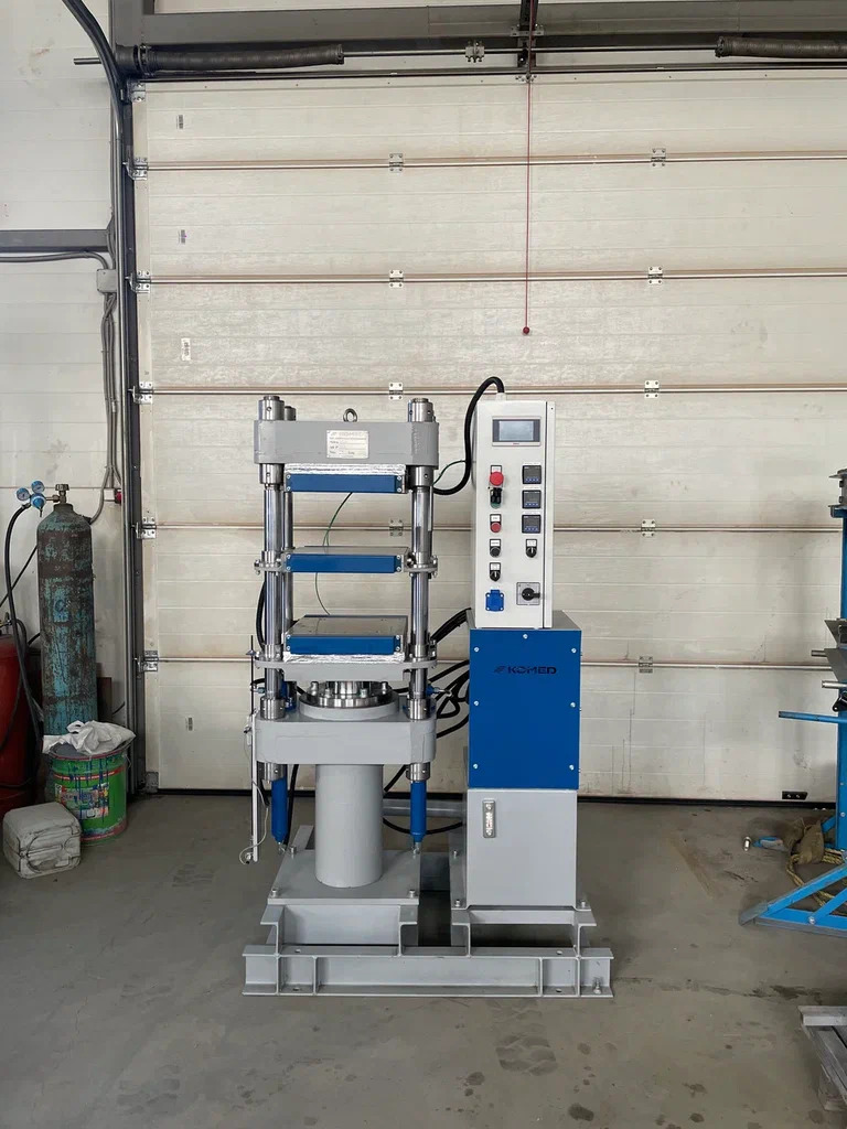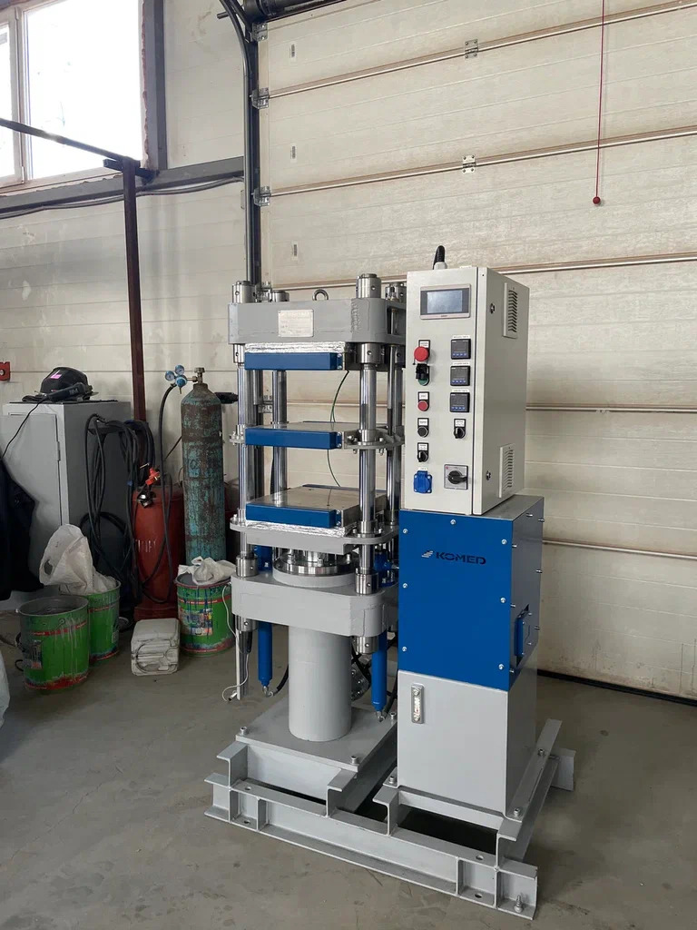 Представляем ещё одну выпускаемую ООО "КОМЕД" модель гидравлического пресса. На этот раз это двухэтажный вулканизационный пресс с усилием сжатия 36 тонн и размером плит 350х350 мм