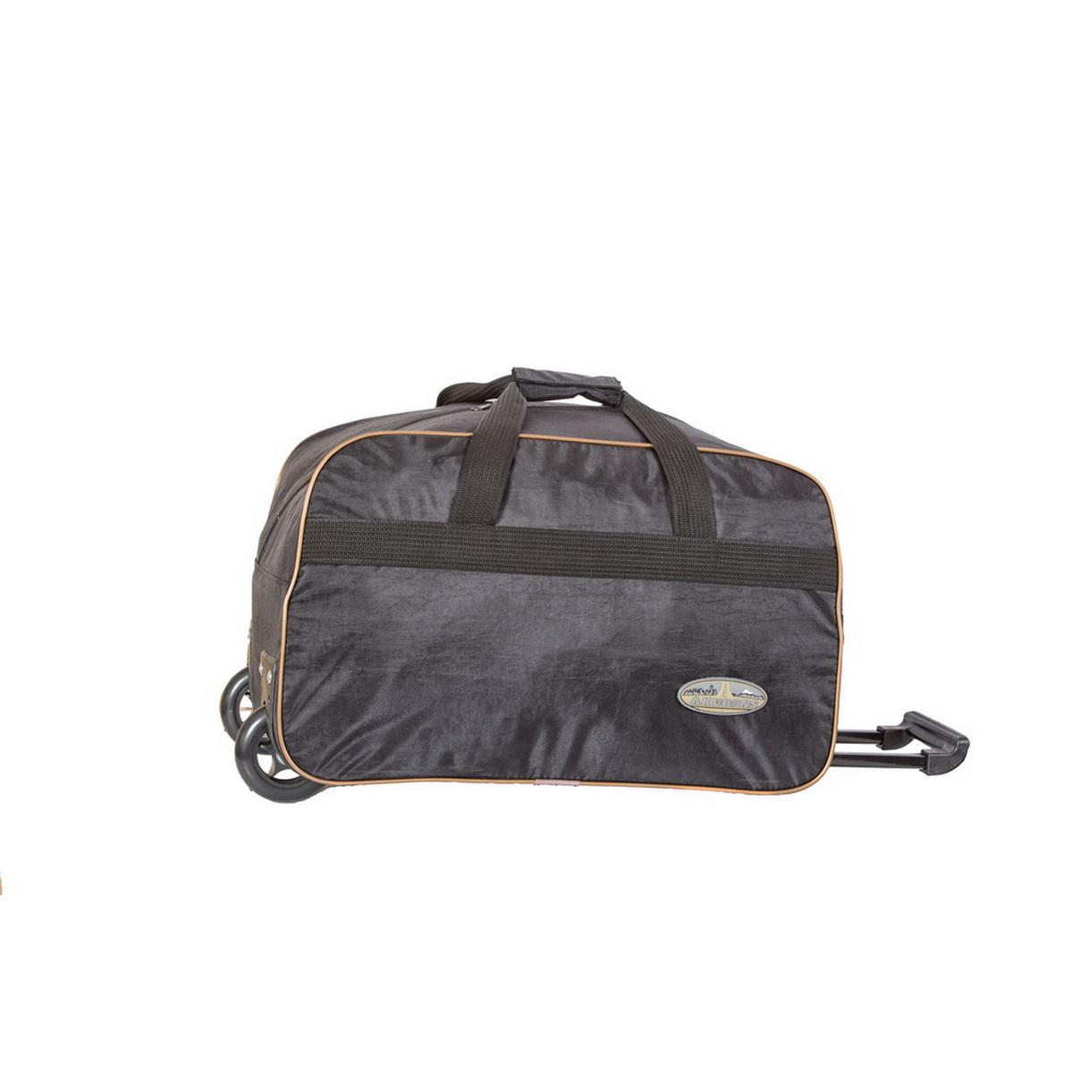 Сумка дорожная на колесах. С одним основным отделением на молнии. Переносные ручки из стропы. Дно корпуса жесткое. Для удобства эксплуатации изделие имеет регулируемый по длине ремень с наплечником.
