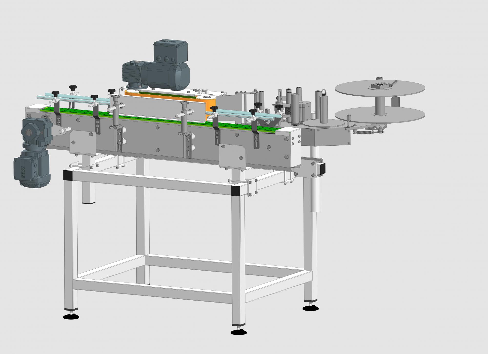 Этикетировочная машина предназначена для нанесения самоклеящейся этикетки на продукцию, может использоваться как самостоятельно, так и в составе линии розлива или упаковки.
