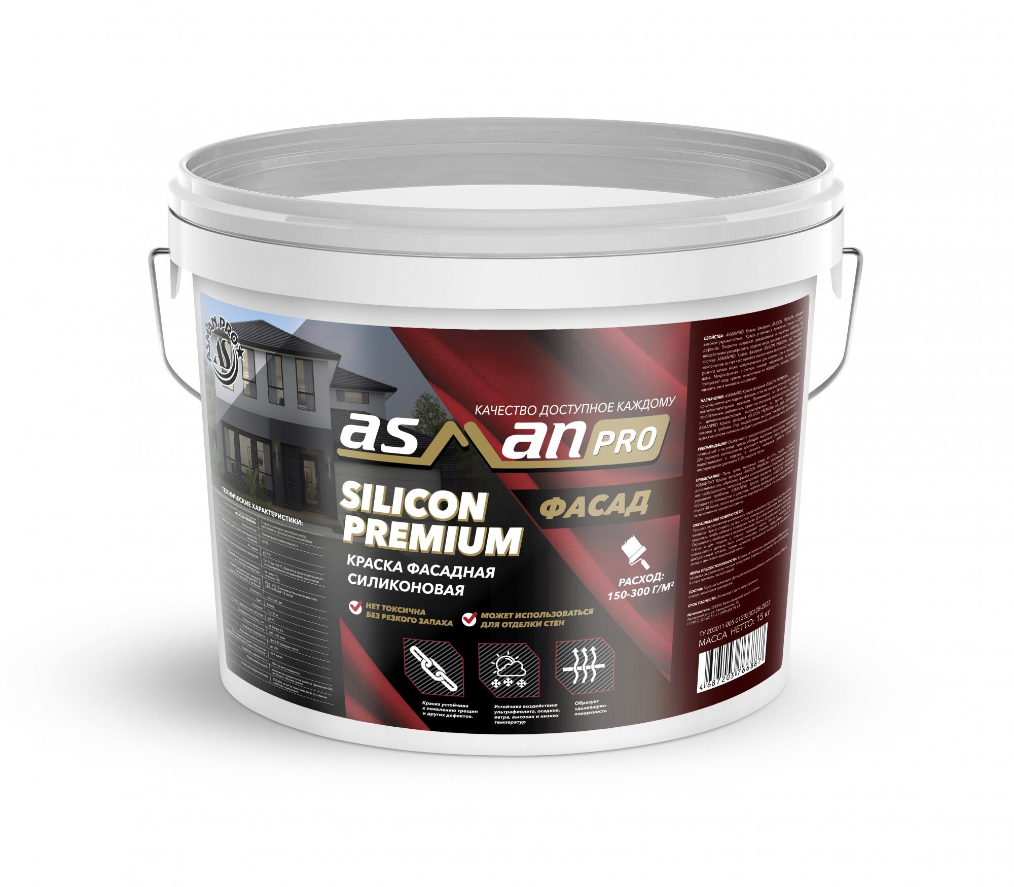 ASMANPRO Краска фасадная SILICON PREMIUM краска силиконовая 13,5 кг. База С