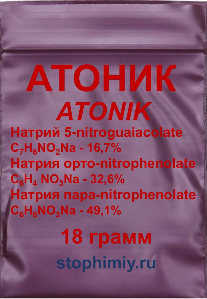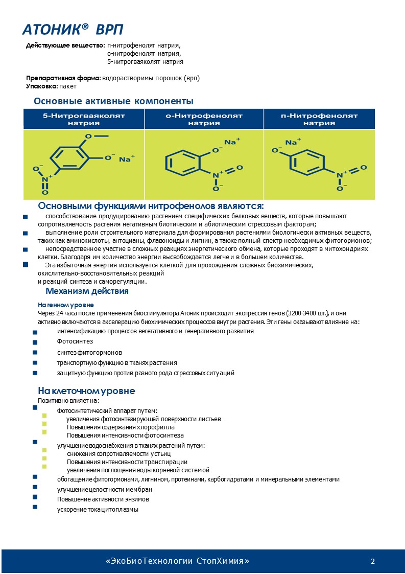 АТОНИК ВРП представляет собой смесь натрия 5-нитрогуаколата, натрия о-нитрофенолата и натрия п-нитрофенолата с соотношением 1:2:3.