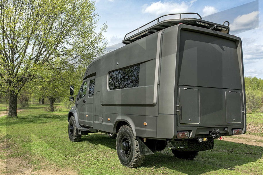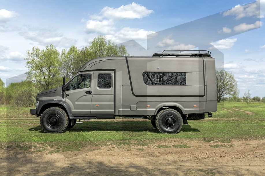 Автодом на шасси Садко Next 4х4. Кухонный блок (мойка, варочные панели, холодильник), запас чистой воды на борту не менее 100 литров, комфортные спальные места, зона отдыха, санузел, доступ на крышу автомобиля, багажные отсеки с доступом снаружи.