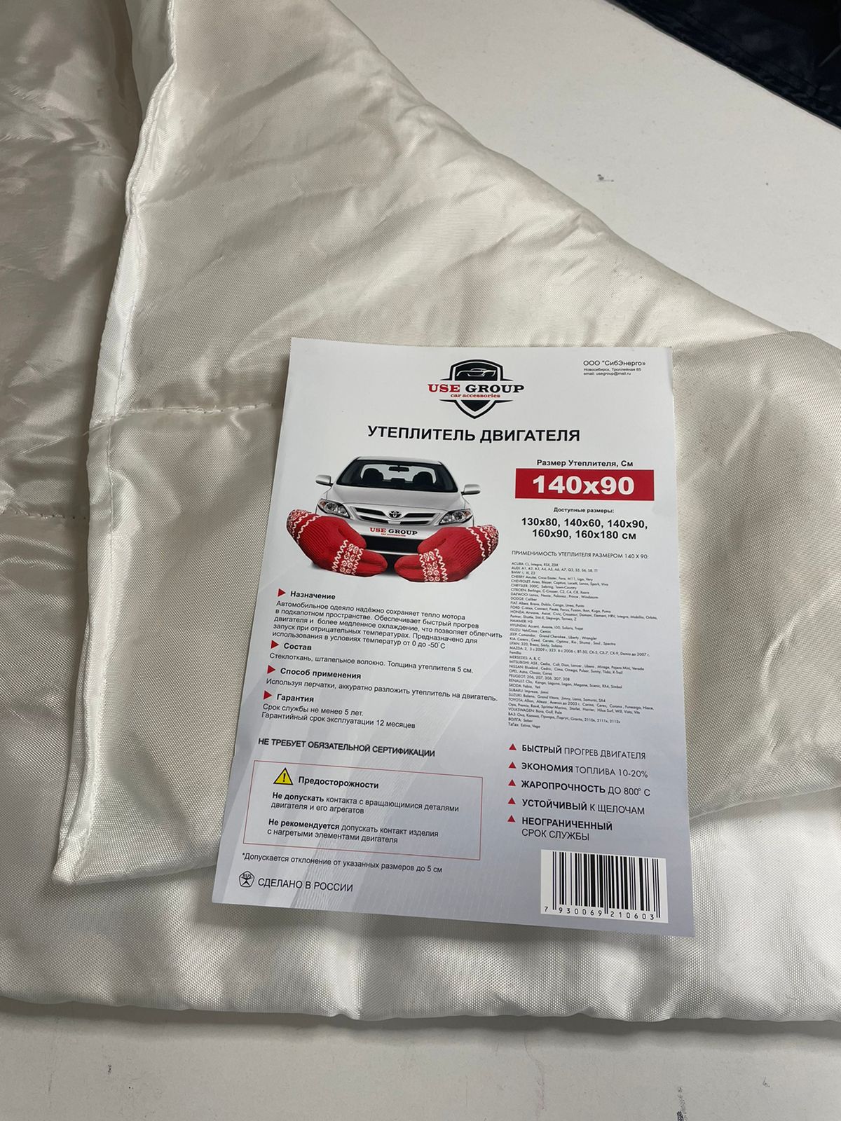 Утеплитель двигателя, созданный на основе качественного сертифицированного сырья: высококачественная минеральная вата без содержания смол, стекловолокнистая ткань.