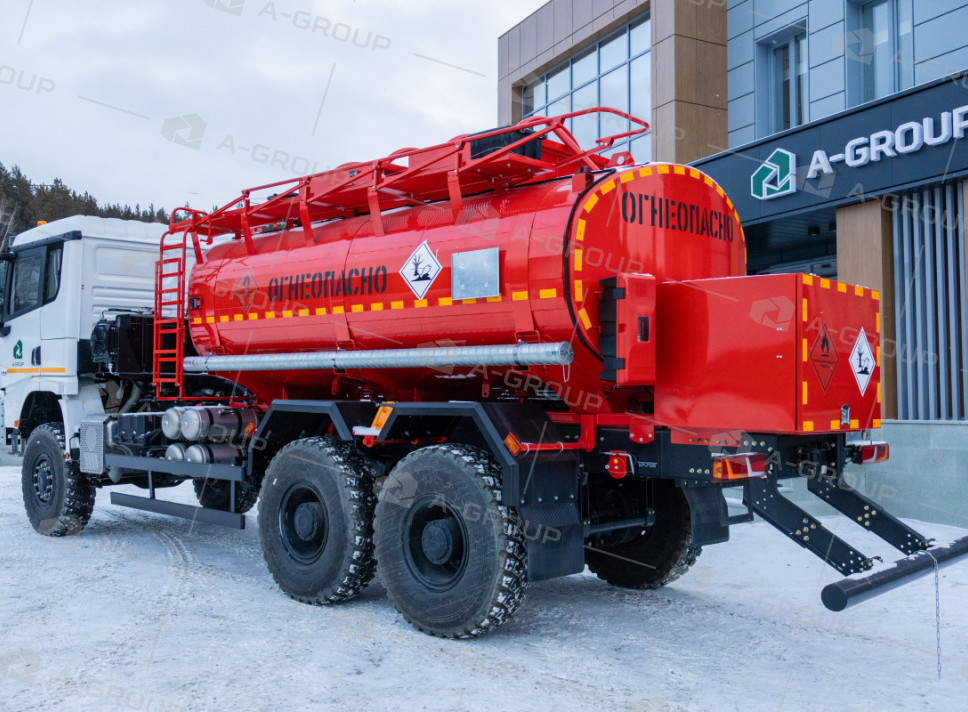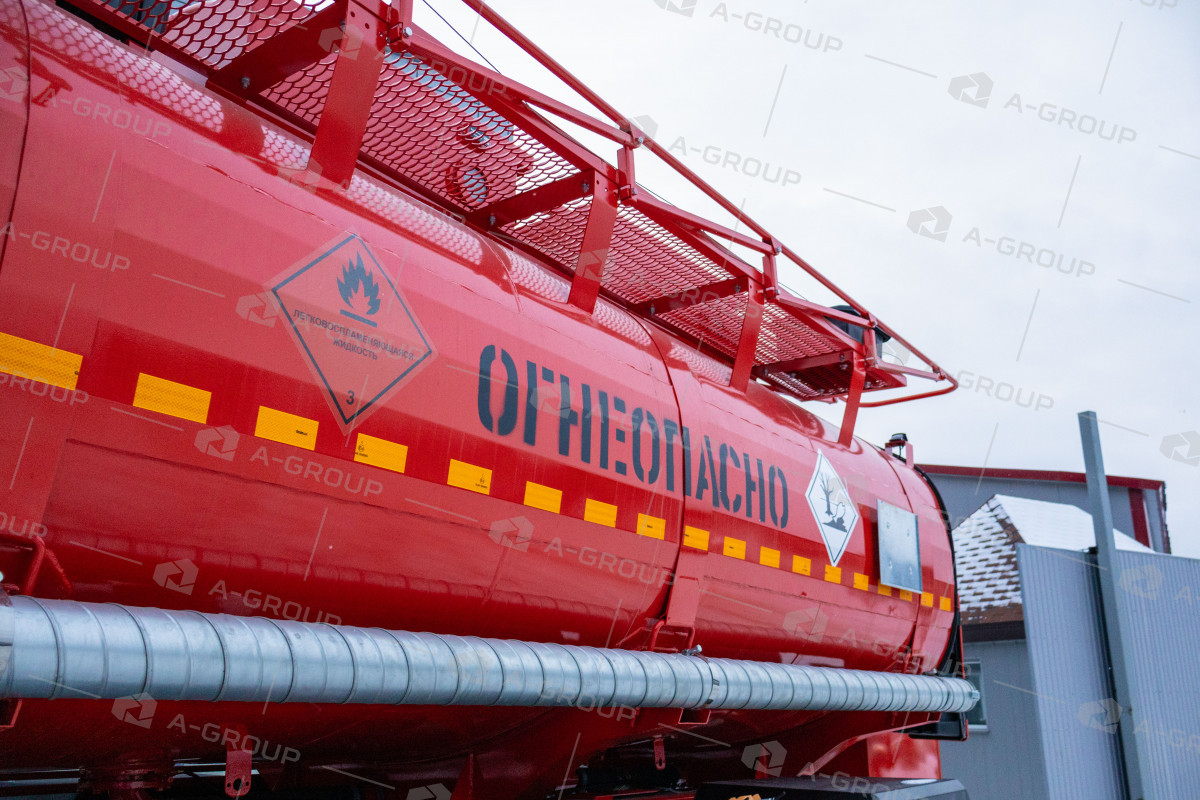 Дополнительная доработка шасси для перевозки ЛВЖ включает: искрогаситель, защиту топливного бака, проблесковые маяки, ящик с песком, огнетушители, экранированную электропроводку, комплект ADR, заземляющие устройства и защиту кнопки массы. Также выполнен монтаж ДЗК за кабину и установка металлических крыльев.