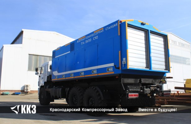 Азотная мембранная компрессорная станция ТГА-20/251 на шасси грузового автомобиля для работы в нефтегазовой отрасли. Давление - 250 кгс/см². Производительность - 20 Нм³/мин. Чистота азота - до 99 %. Длина - 13000 см. Ширина - 2500 см. Высота - 3600 см. Вес - 31000 кг.