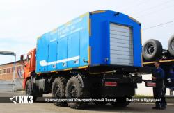 Азотная мембранная компрессорная станция ТГА-16/121 на шасси грузового автомобиля для работы в нефтегазовой отрасли. Давление - 120 кгс/см². Производительность - 16 Нм³/мин. Чистота азота - до 99 %. Длина - 10000 см. Ширина - 2500 см. Высота - 3600 см. Вес - 26500 кг.