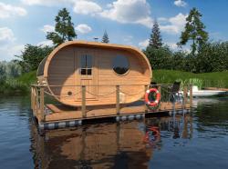 Готовая к эксплуатации баня на воде с комнатой отдыха, установленная на понтонном основании с открытой террасой. Это уникальная точка притяжения, которая станет визитной карточкой вашего места. Спроектированы готовые решения. Стиль,форма, комплектация, размеры исходя из пожеланий заказчика, бани могут быть как «классические» из бруса или бревна, так и современной формы «бочка», «овал», «барн».