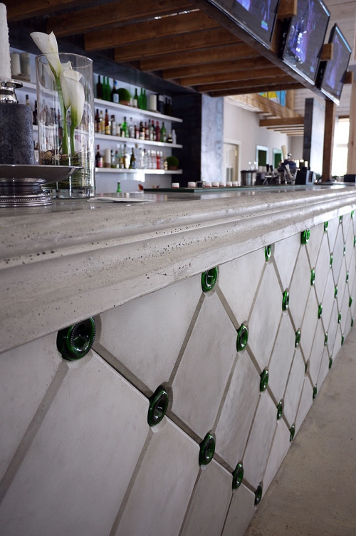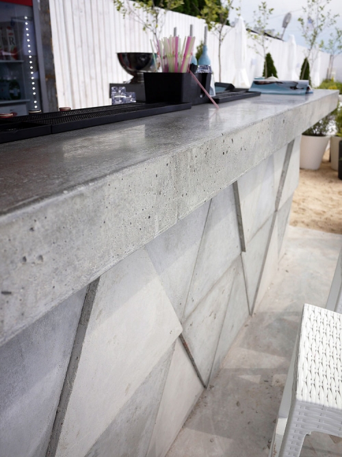 Барные стойки из бетона можно встретить в интерьере кухни или гостиной, в квартире-студии такая конструкция эффектно разделяет пространство и служит его украшением.