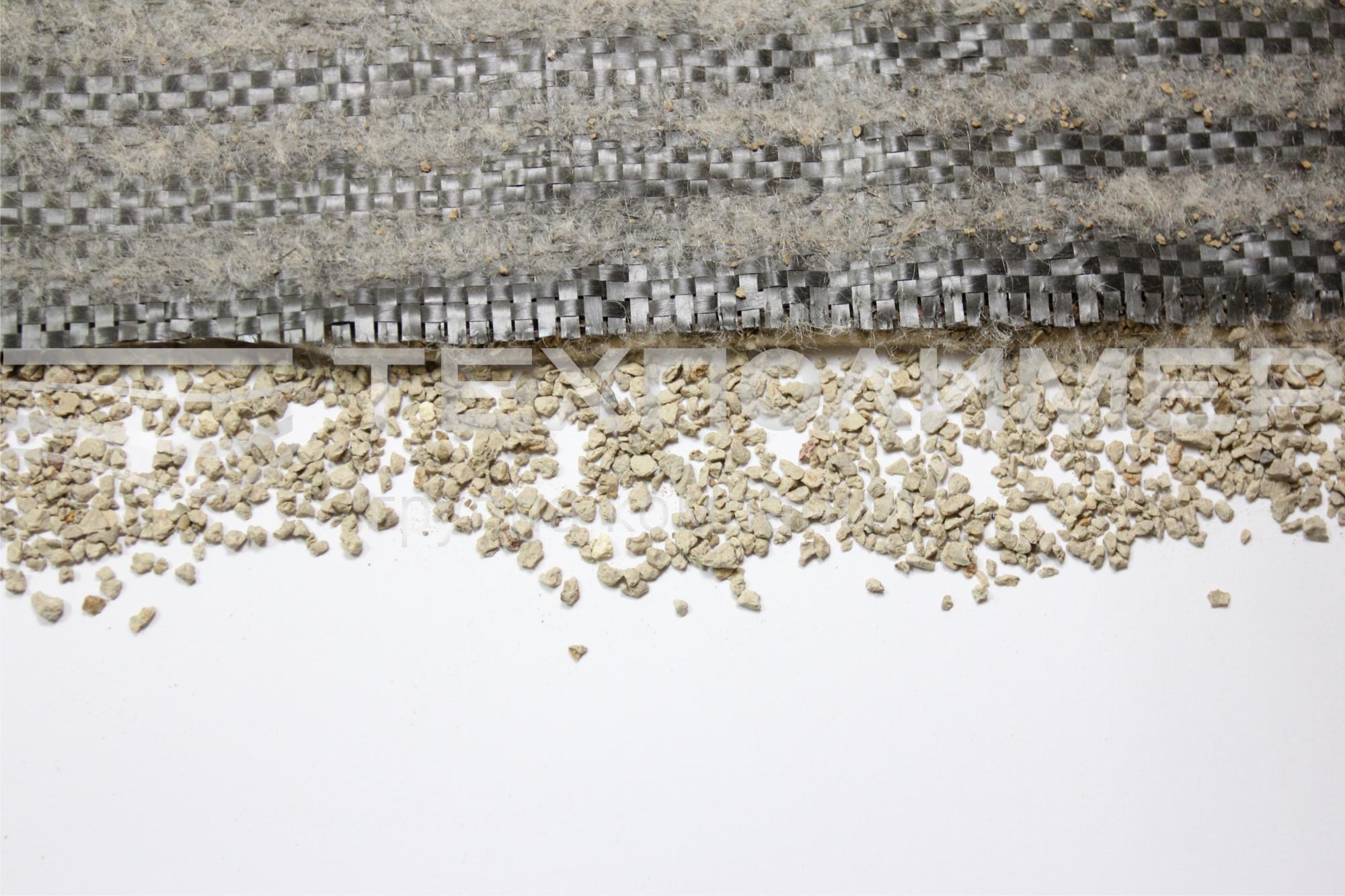 Бентонитовый мат сделан из полипропиленовых волокон, внутри каркаса которого размещены гранулы активированного или природного натриевого бентонита. Мат имеет тканую структуру с одной стороны и нетканую - с другой. Слои соединены между собой иглопробивным способом, благодаря чему достигается равномерное распределение и фиксация гранул бентонита внутри каркаса.
