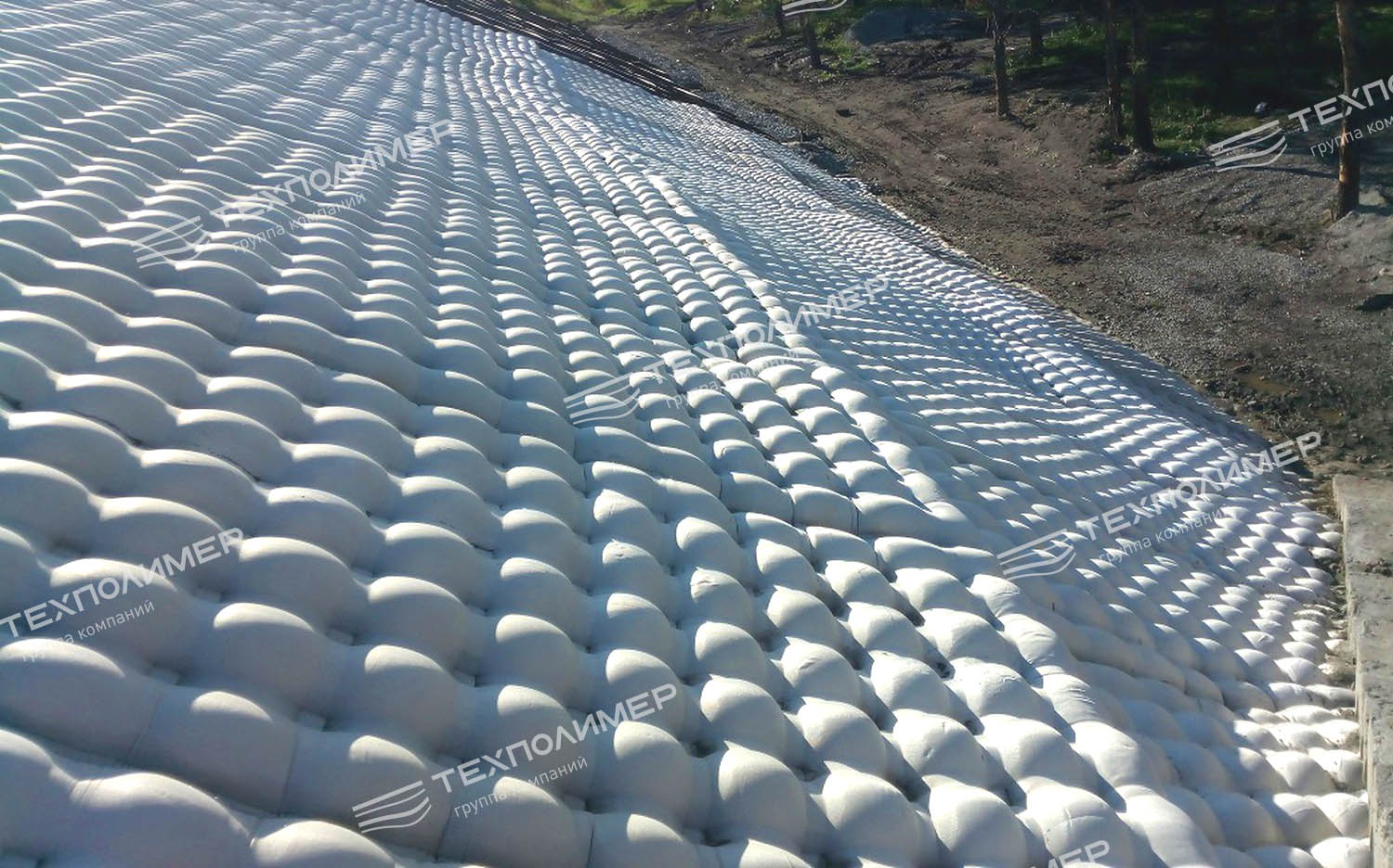 Бесшовное наполняемое текстильное полотно, применяемое в качестве гидроизоляции и противоэрозийной защиты.