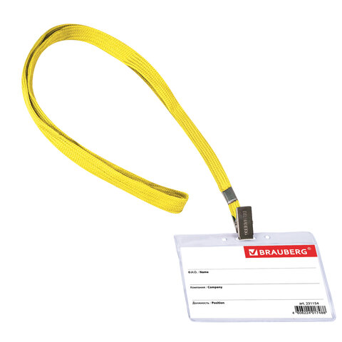 Бейджик для пропуска горизонтальный на желтой ленте используется для размещения именных карточек, пропусков, пластиковых карт. Карман из мягкого прочного пластика гарантирует долгий срок службы.