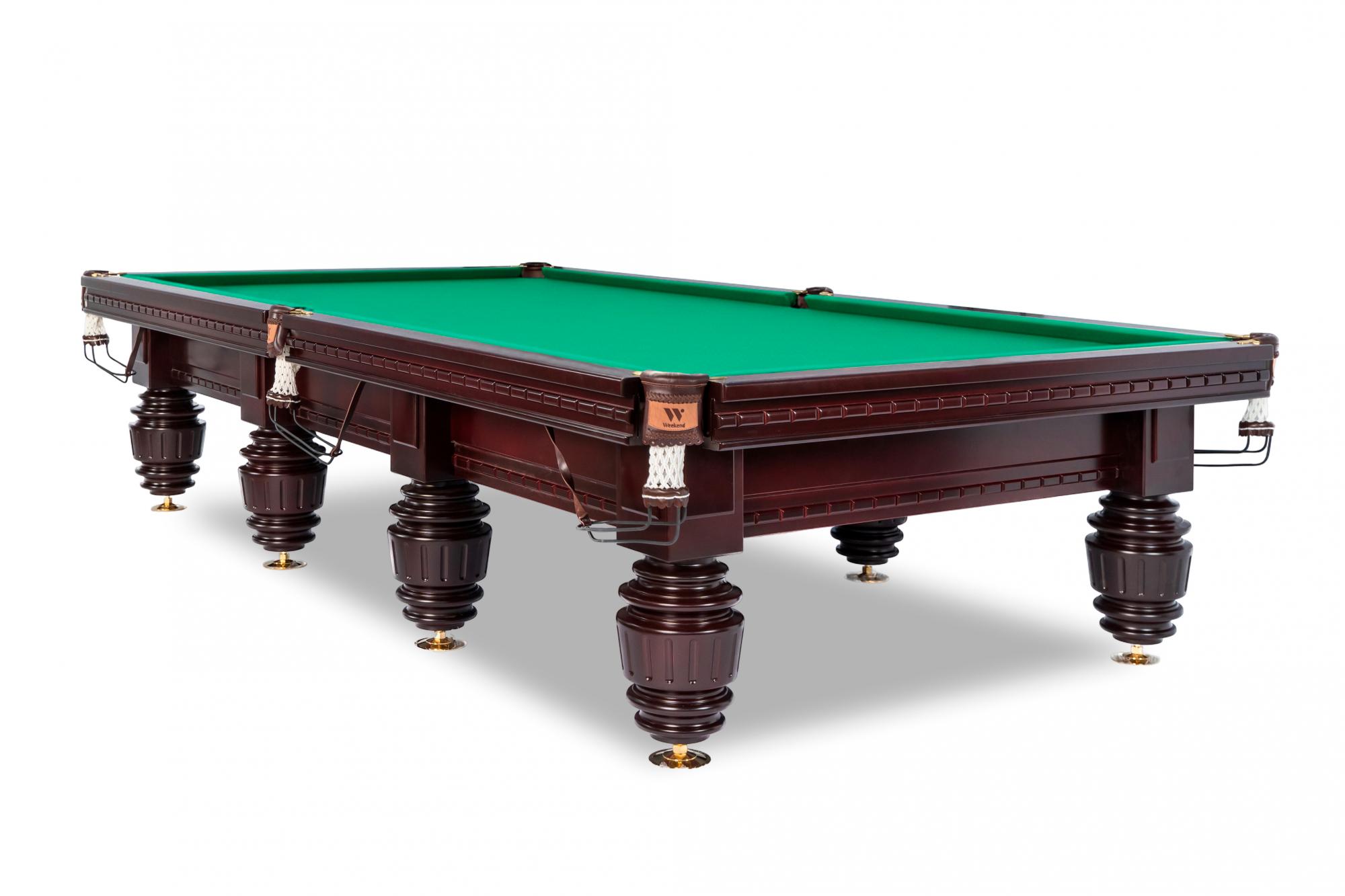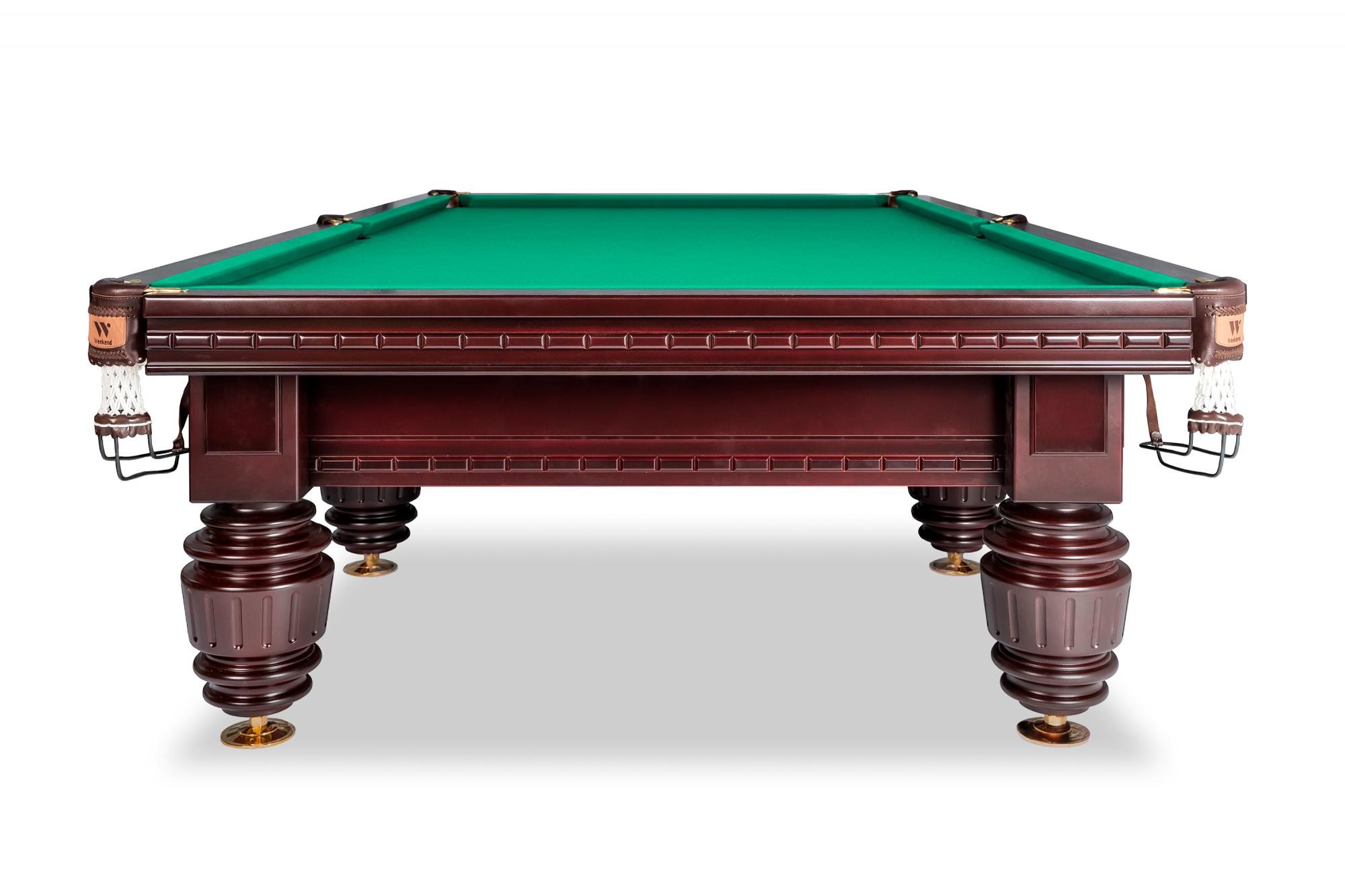 Бильярдный стол Turnus - это сочетание классической элегантности и современных технологий. Оттенок махагона и массивные опоры создают атмосферу аристократического клуба.