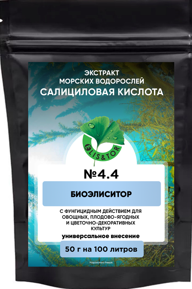 БиоЭлиситор Элис&Тор №4.4 PRO это полифункциональная смесь Янтарной, Салициловой кислот (ВРП) и Экстрактов Морских Водорослей родов Sargassum, Laminaria, Ascophyllum, а также комплекса аминокислот растительного происхождения в высокой концентрации, таких как аспарагиновая и глутаминовая кислоты, тирозин, аргинин, аланин, лизин, пролин, глицин и др. В том числе незаменимые валин, лейцин, метионин и др.