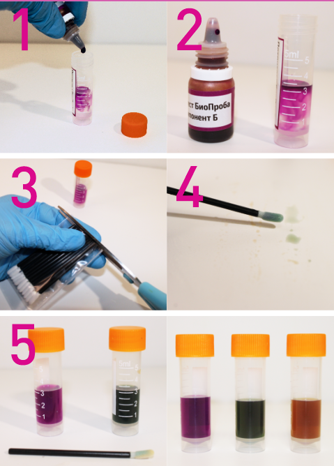 Экспресс тест течение нескольких секунд реагирует со ВСЕМИ ТИПАМИ органических загрязнений: пищевые остатки, белки, жиры, сахара, ароматизаторы, фенольные соединения, оксалаты и микроорганизмы, моющие средства, гуанидинов, аминов и т.д.