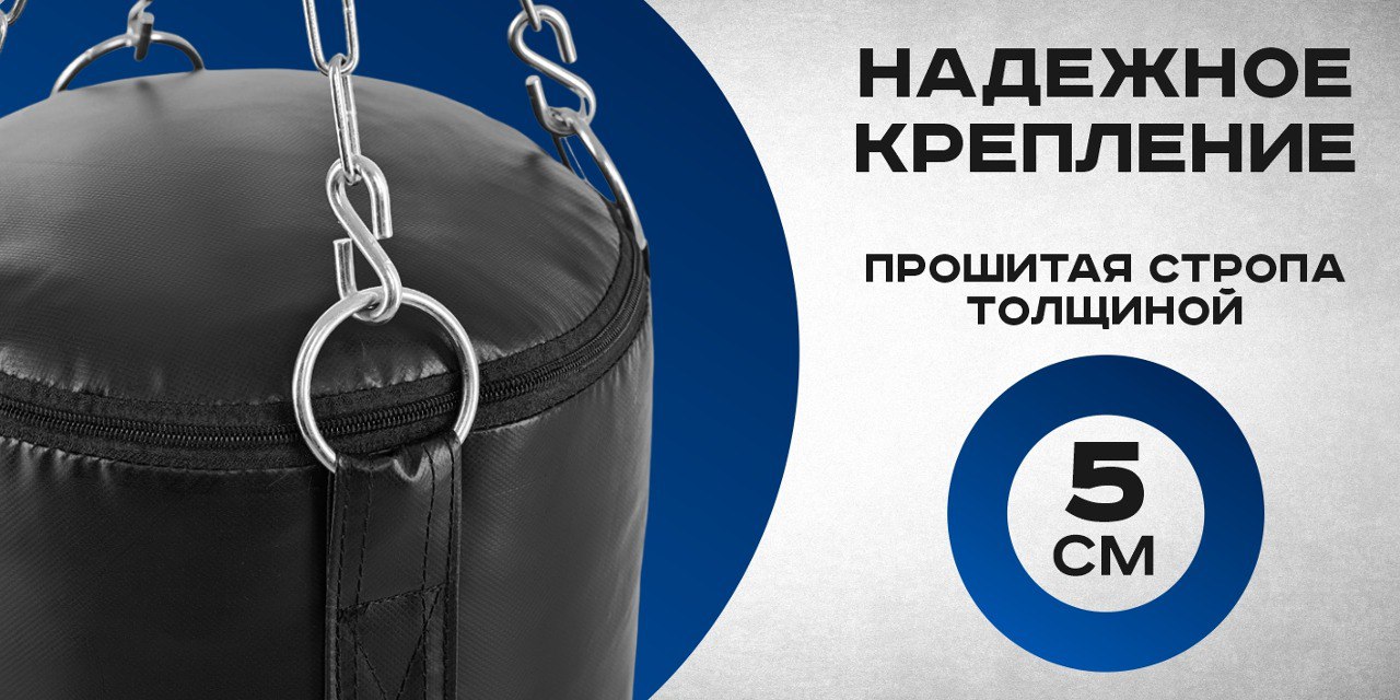 Боксерская груша Pantera Energy, для занятий дома и в спортивных клубах. Высота мешка: 90 см, диаметр 32 см, вес 25-28 кг. ВАЖНО: Чтобы выбрать нужную высоту, ориентируйтесь на картинку! Мешок для бокса поможет вам в отработке ударов, развитии точности, силы и быстроты. Один из лучших спортивных снарядов, подходящий как для мужчин, так и для женщин. Покрытие мешка бокс изготовлено из ткани ПВХ высокого качества. Это дает ему солидный запас прочности и высокую износоустойчивость. Внутри боксерский мешок снабжен усиленным стержнем, что также увеличивает срок его службы. Наполнение груши подвесной - измельченный трикотажный текстиль плотностью 650 гр.м., песок, опилки. Соотношение: 70% текстильная ветошь, 20% опилки и 10% песок.