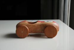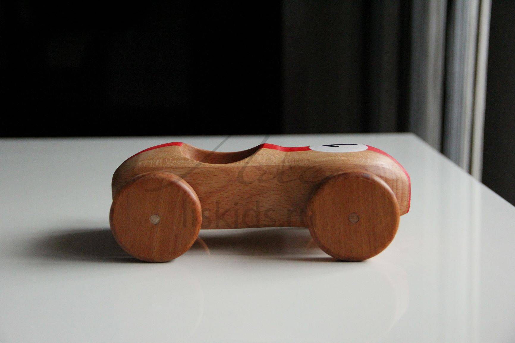Машинка «Формула 1» полностью изготовлена из бука, в ее конструкции нет металлических элементов.