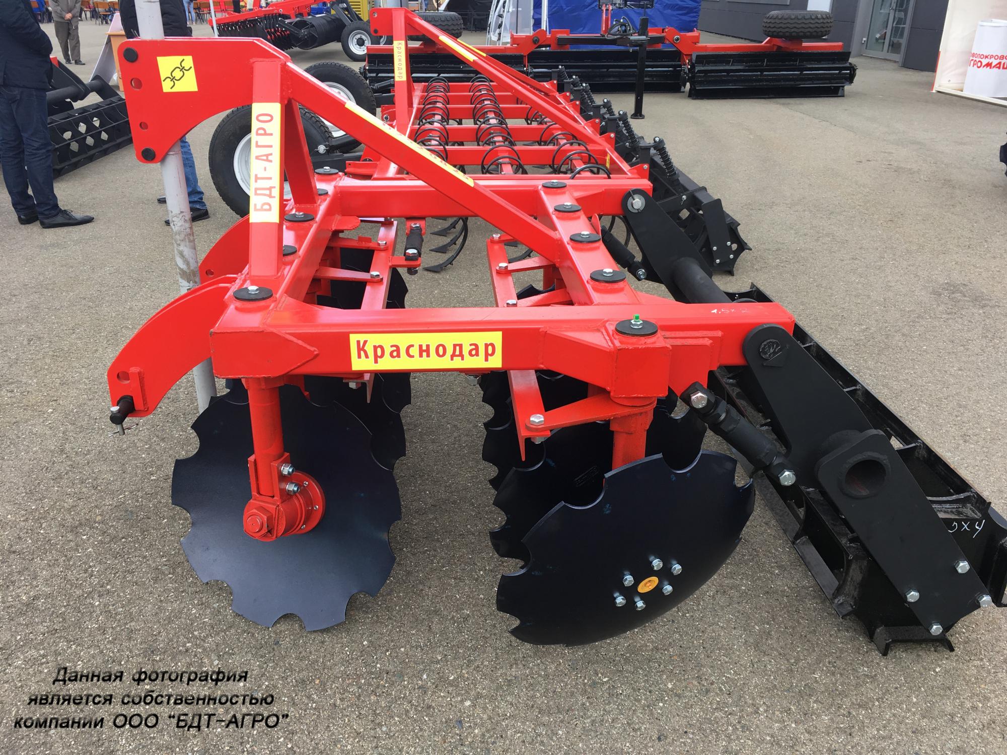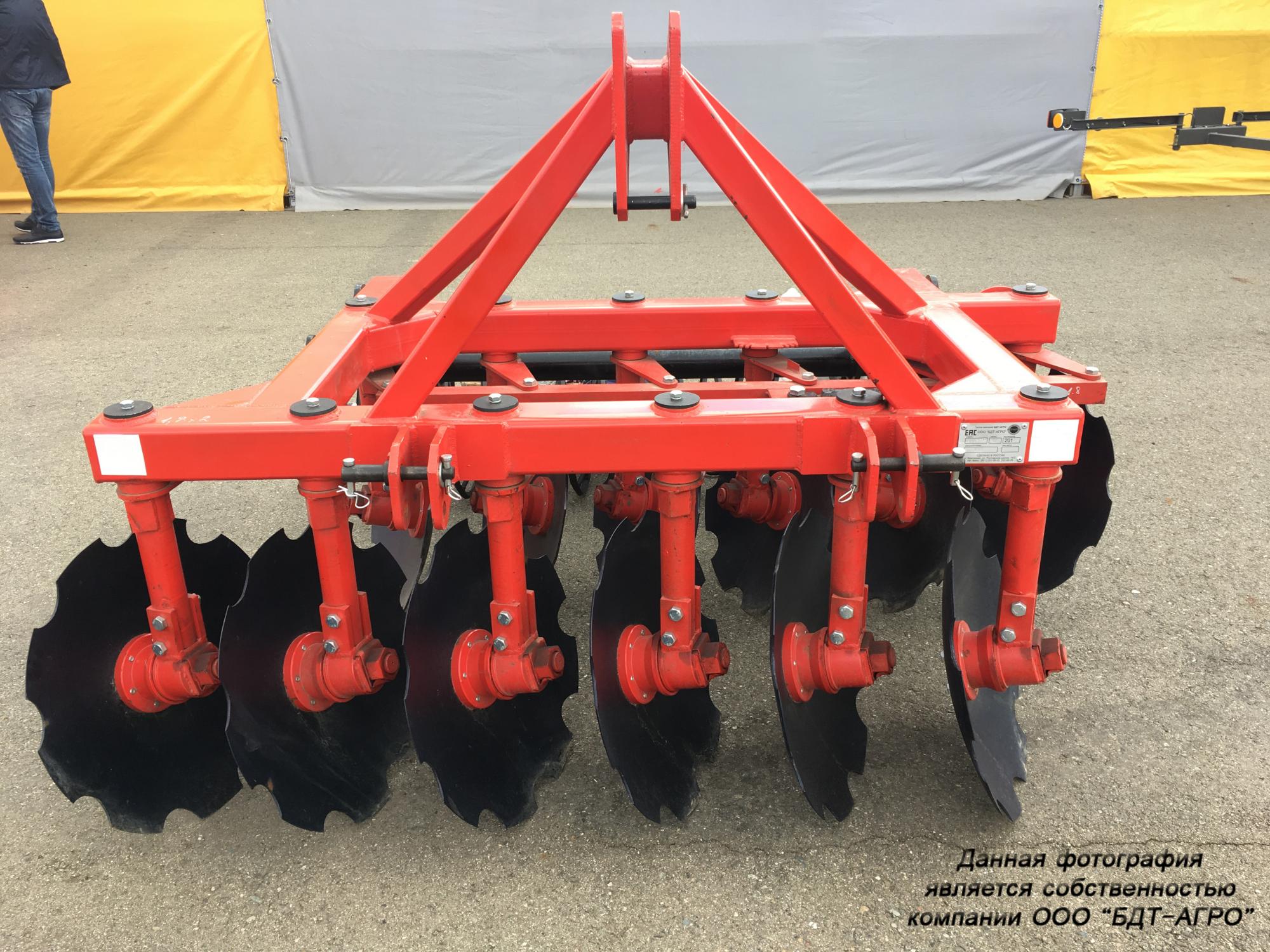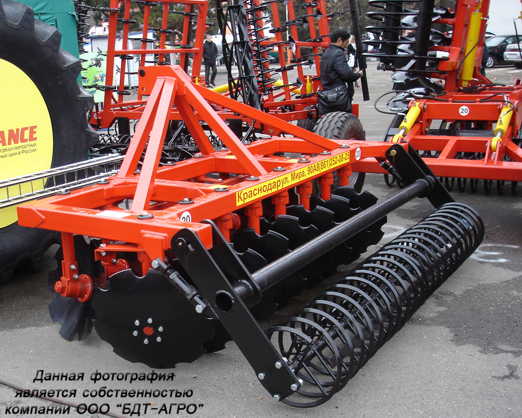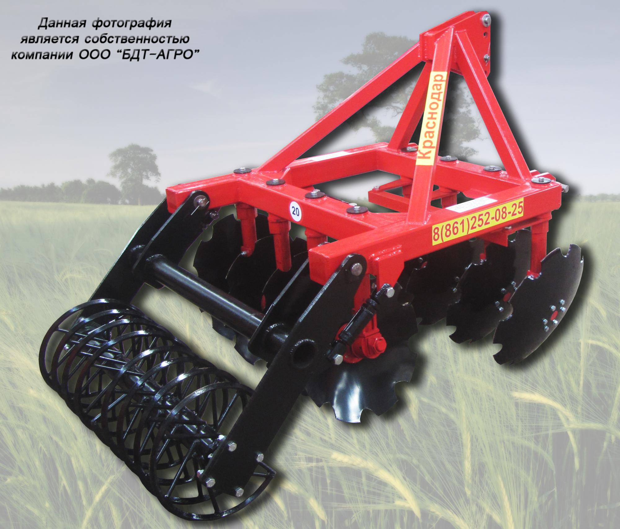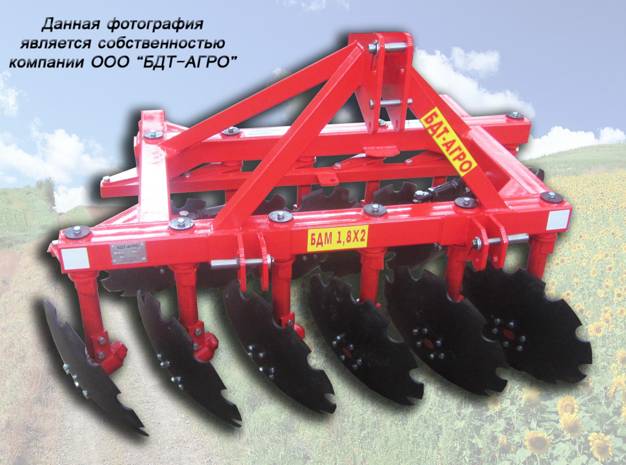 Навесные двухрядные дисковые бороны с подшипниковыми узлами внутри диска серии БДН. Это простые проверенные давно выпускающиеся орудия. Глубина обработки до 15 см.