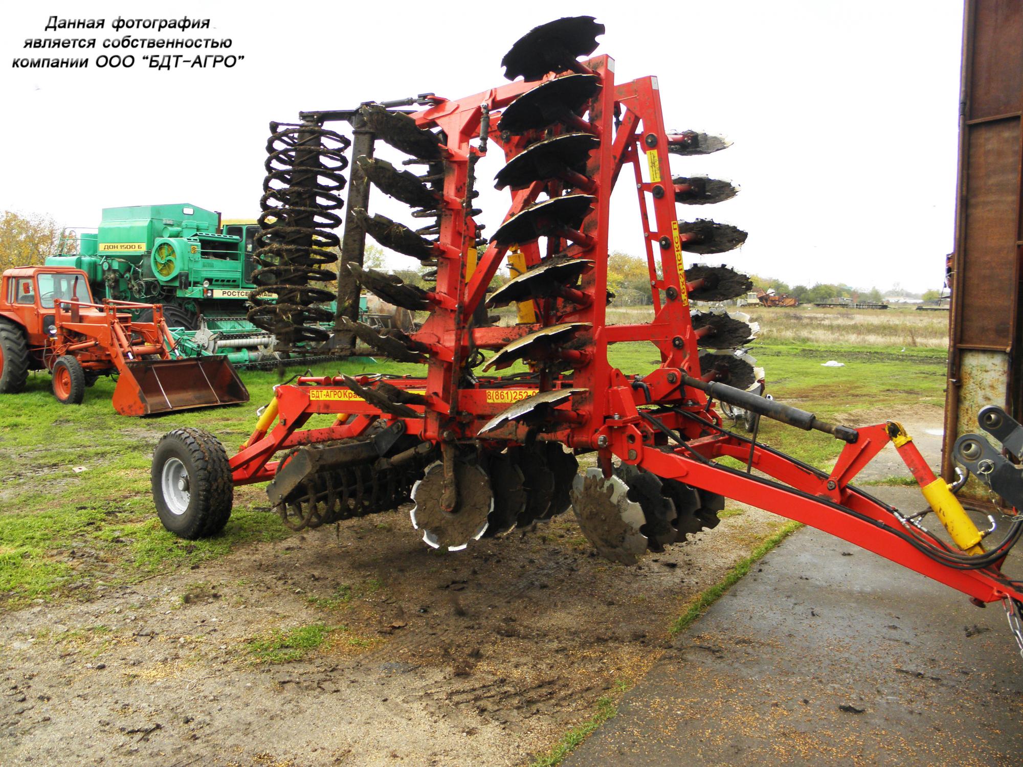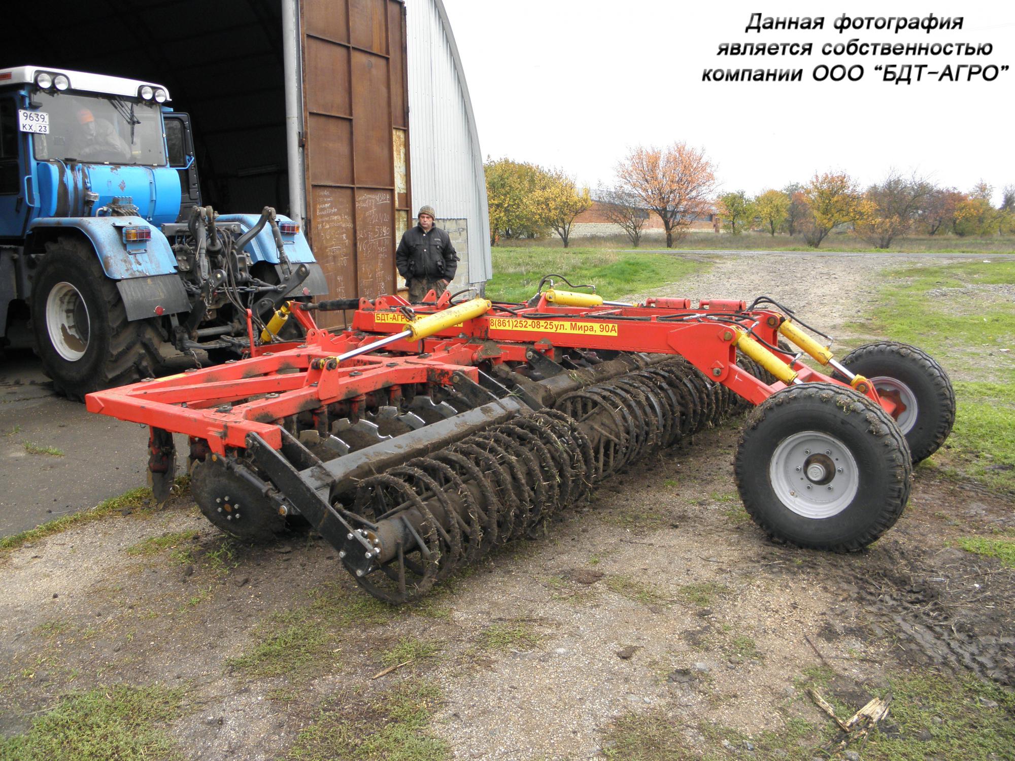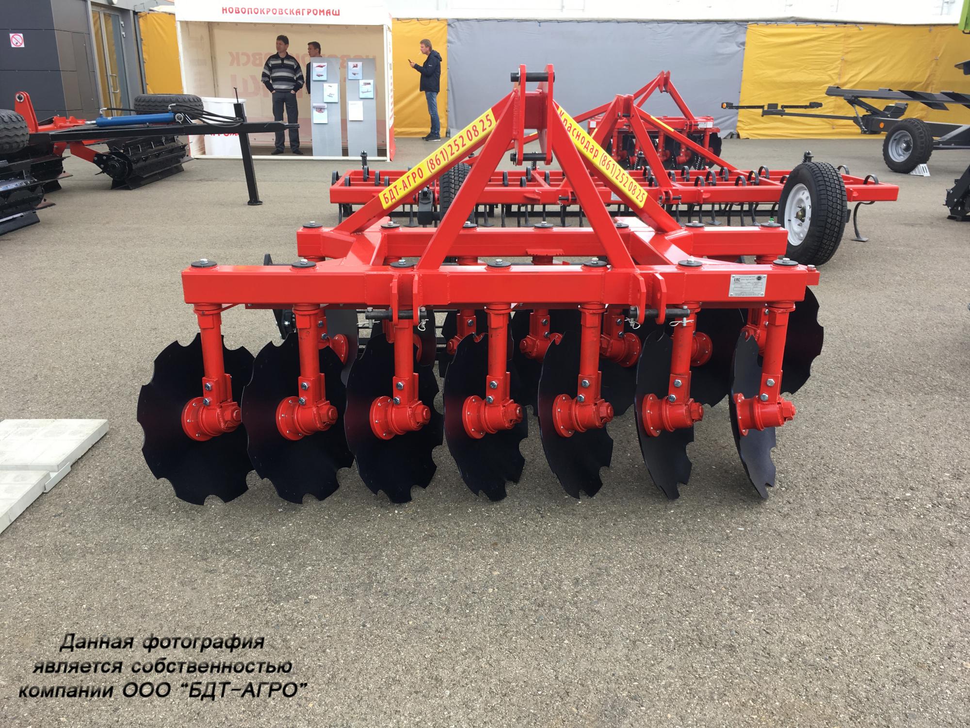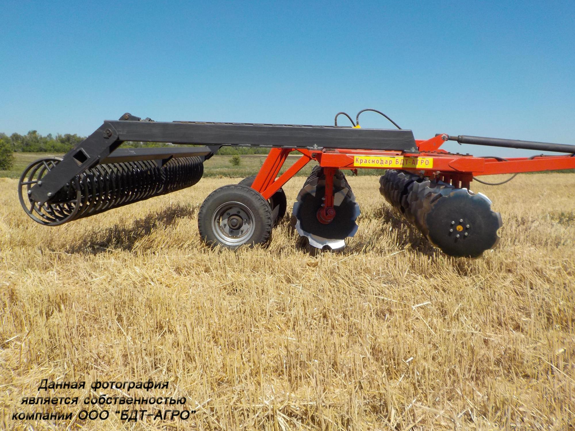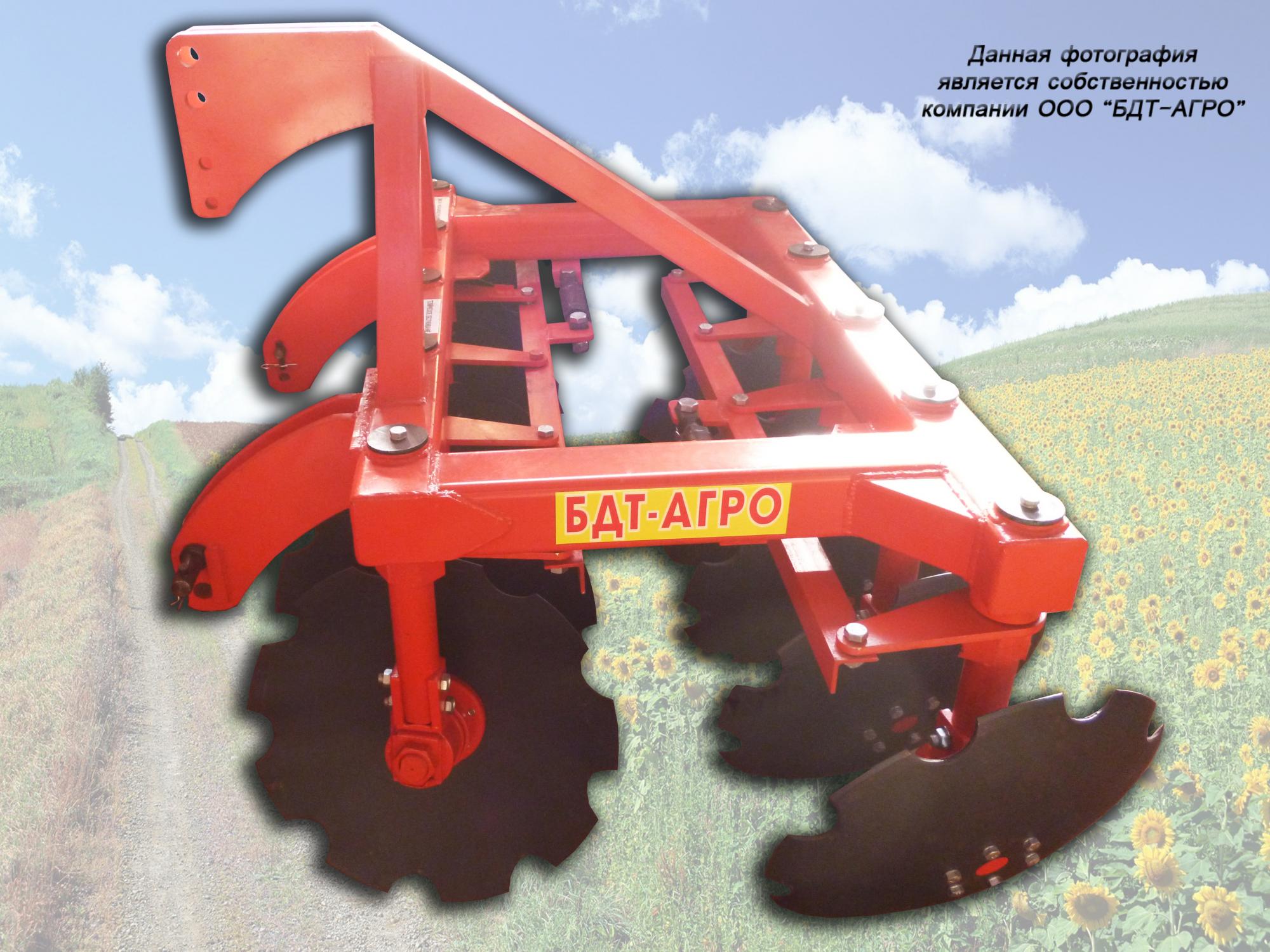 Двухрядная борона дисковая модернизированная БДМ с подшипниковым узлом внутри сферы диска, с дисками на индивидуальной стойке, с изменением угла атаки дисков синхронно в каждом ряду, предназначена для поверхностной обработки почвы на глубину до 15см, уничтожения сорняков и измельчения пожнивных остатков. За счет равномерного перемешивания земли с растительными остатками эффективно применение бороны дисковой на почвах подверженных ветровой и водной эрозии. Растительные остатки, равномерно перемешанные с верхним слоем почвы, защищают почву от выдувания и вымывания, улучшают воздушный обмен. При этом растительные остатки, находясь в земле, активно превращаются в перегной, повышая плодородие почвы.