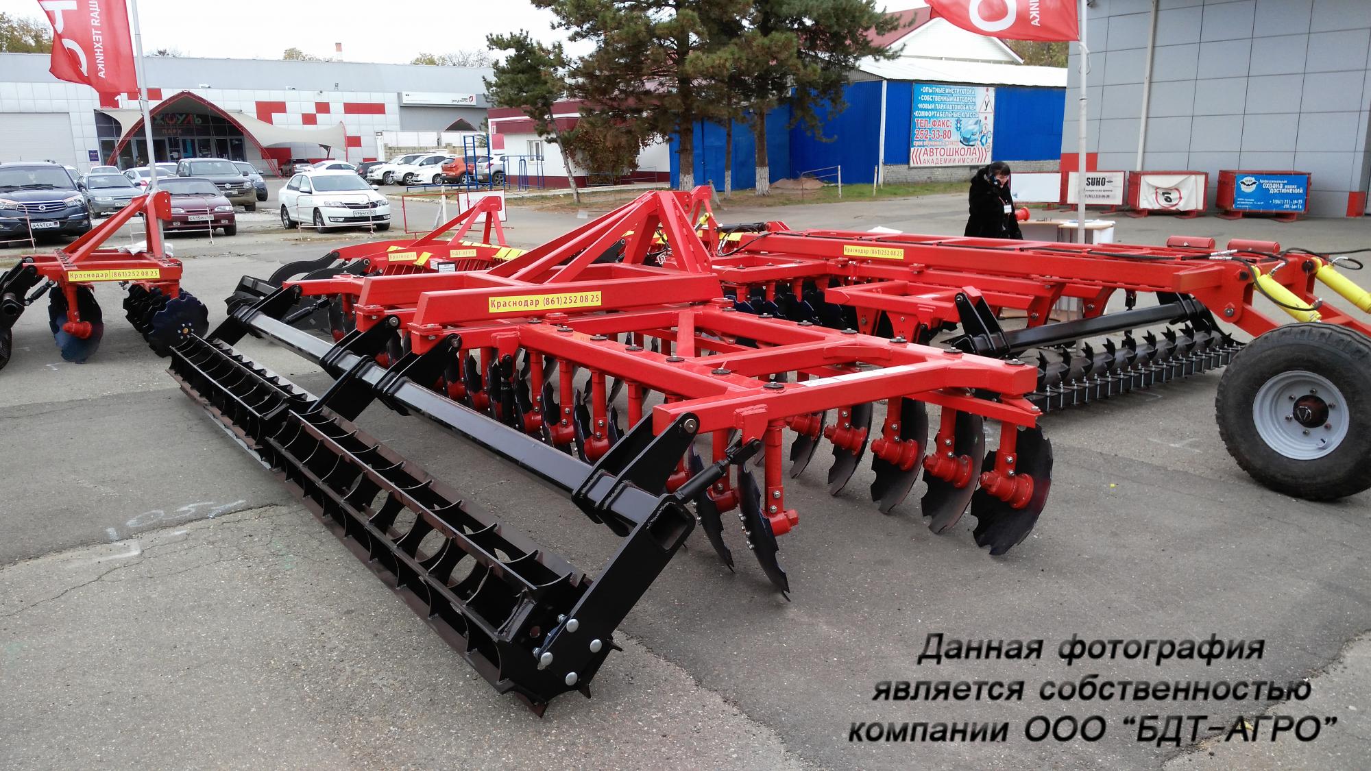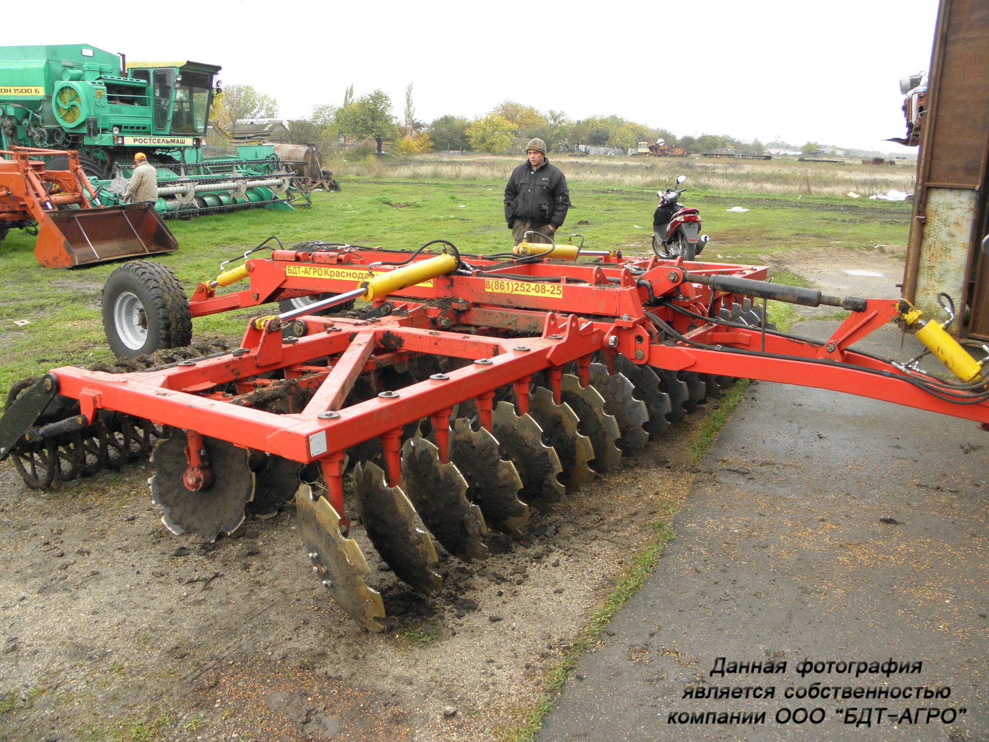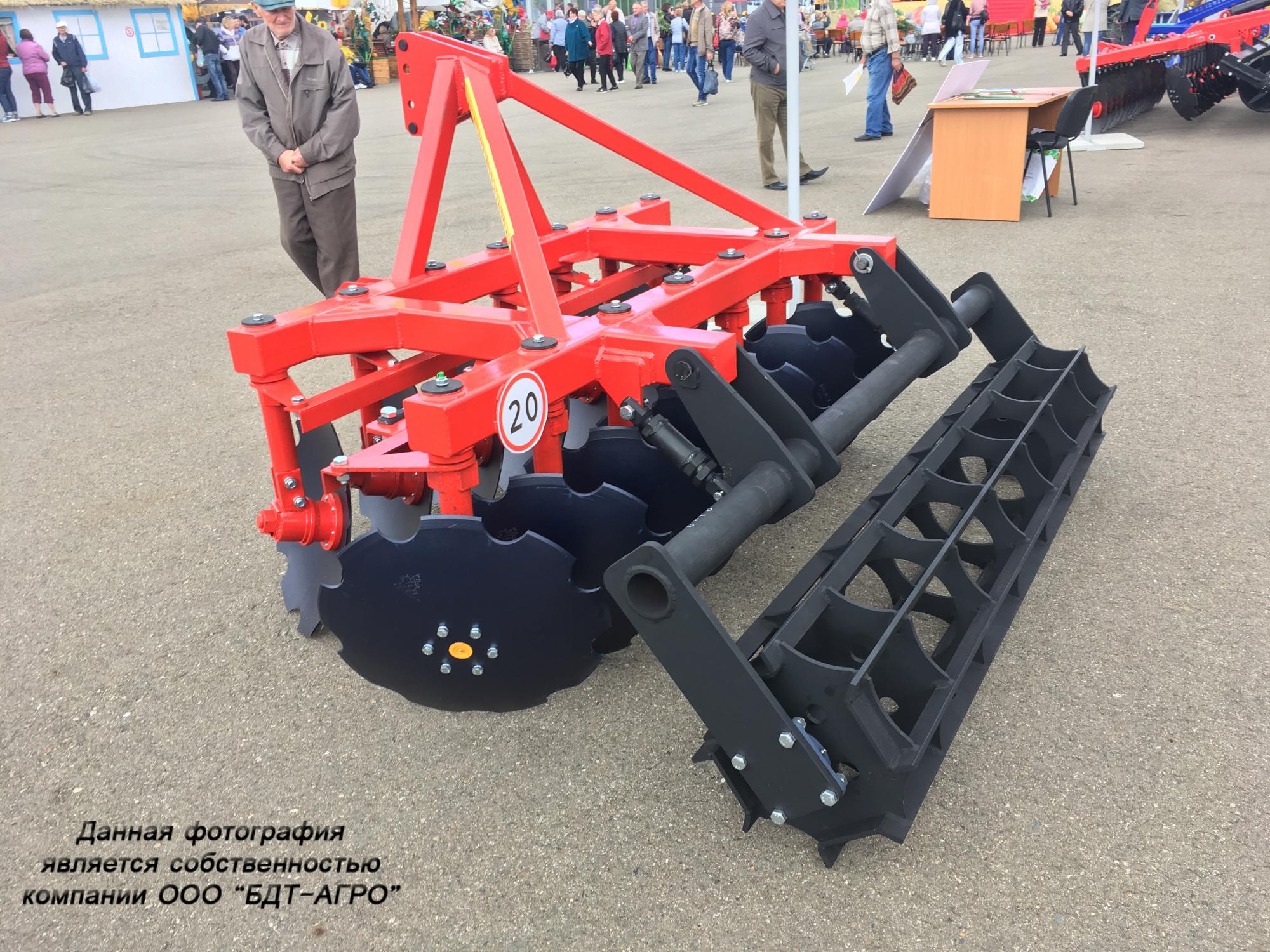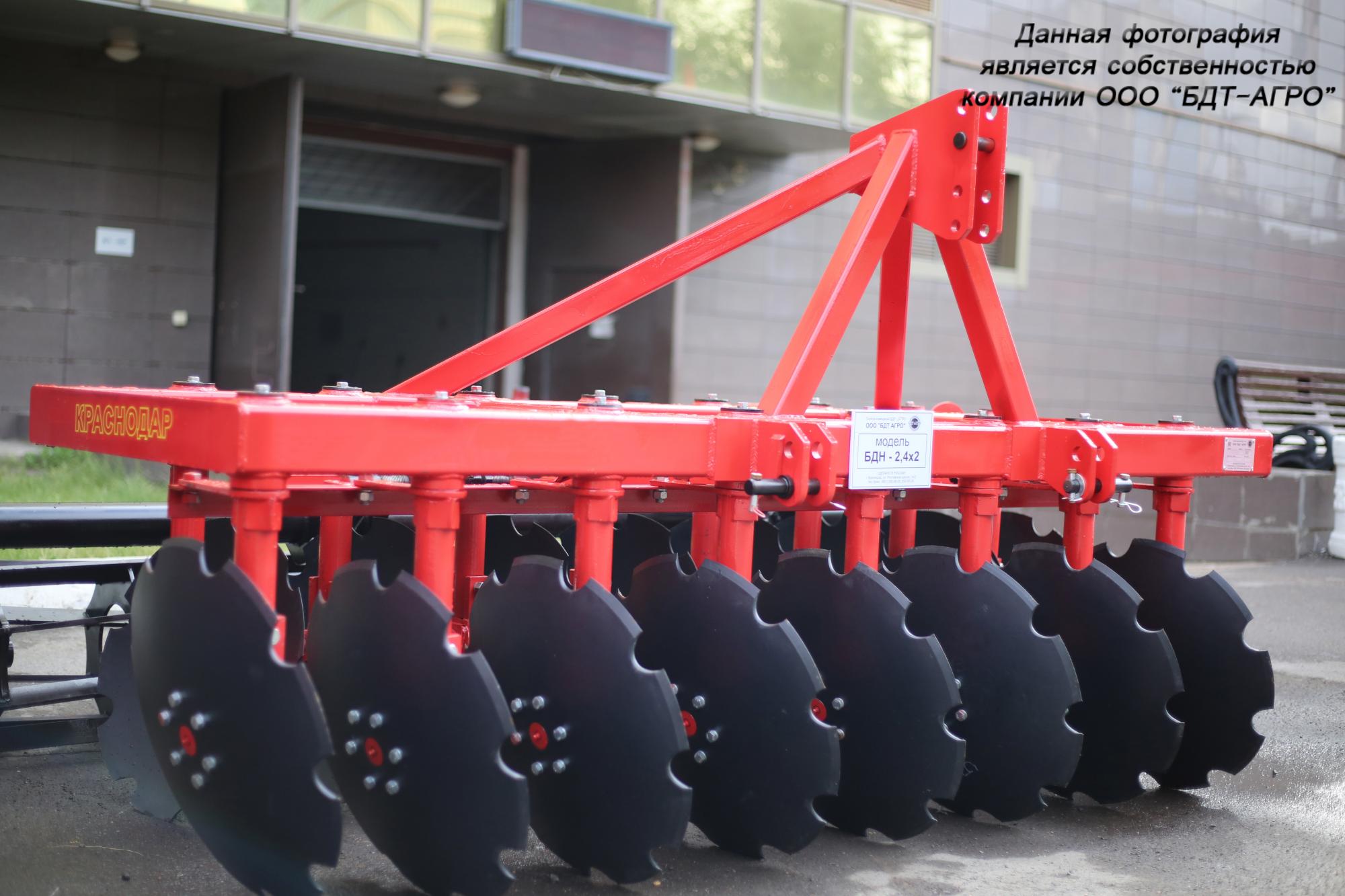 Двухрядная борона дисковая модернизированная БДМ с подшипниковым узлом внутри сферы диска, с дисками на индивидуальной стойке, с изменением угла атаки дисков синхронно в каждом ряду, предназначена для поверхностной обработки почвы на глубину до 15см, уничтожения сорняков и измельчения пожнивных остатков. За счет равномерного перемешивания земли с растительными остатками эффективно применение бороны дисковой на почвах подверженных ветровой и водной эрозии. Растительные остатки, равномерно перемешанные с верхним слоем почвы, защищают почву от выдувания и вымывания, улучшают воздушный обмен. При этом растительные остатки, находясь в земле, активно превращаются в перегной, повышая плодородие почвы.