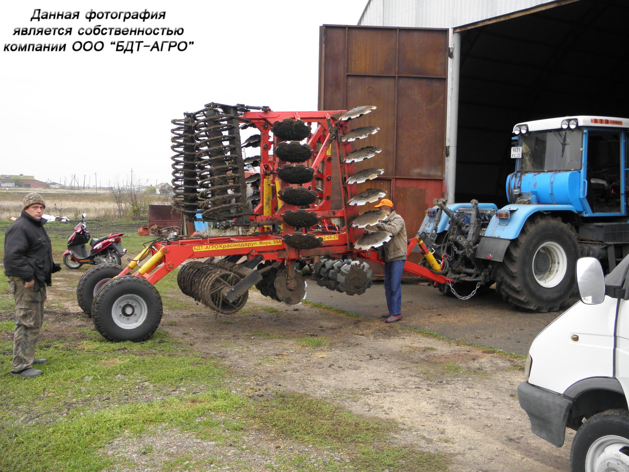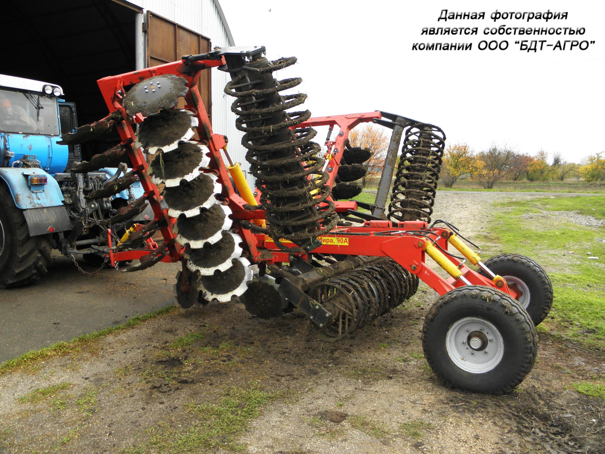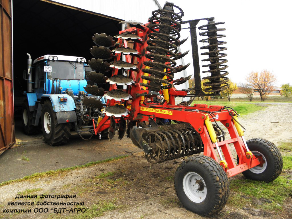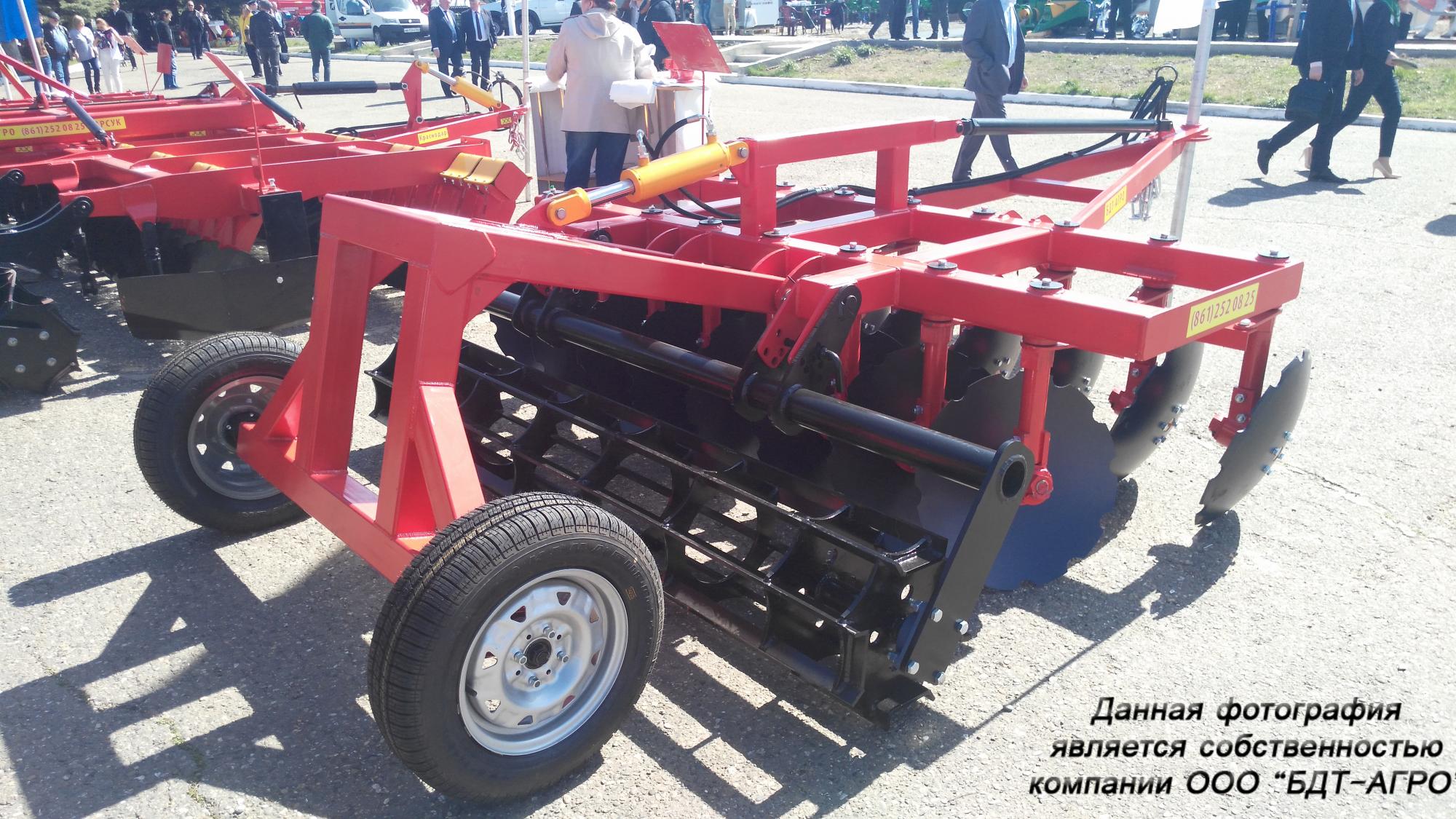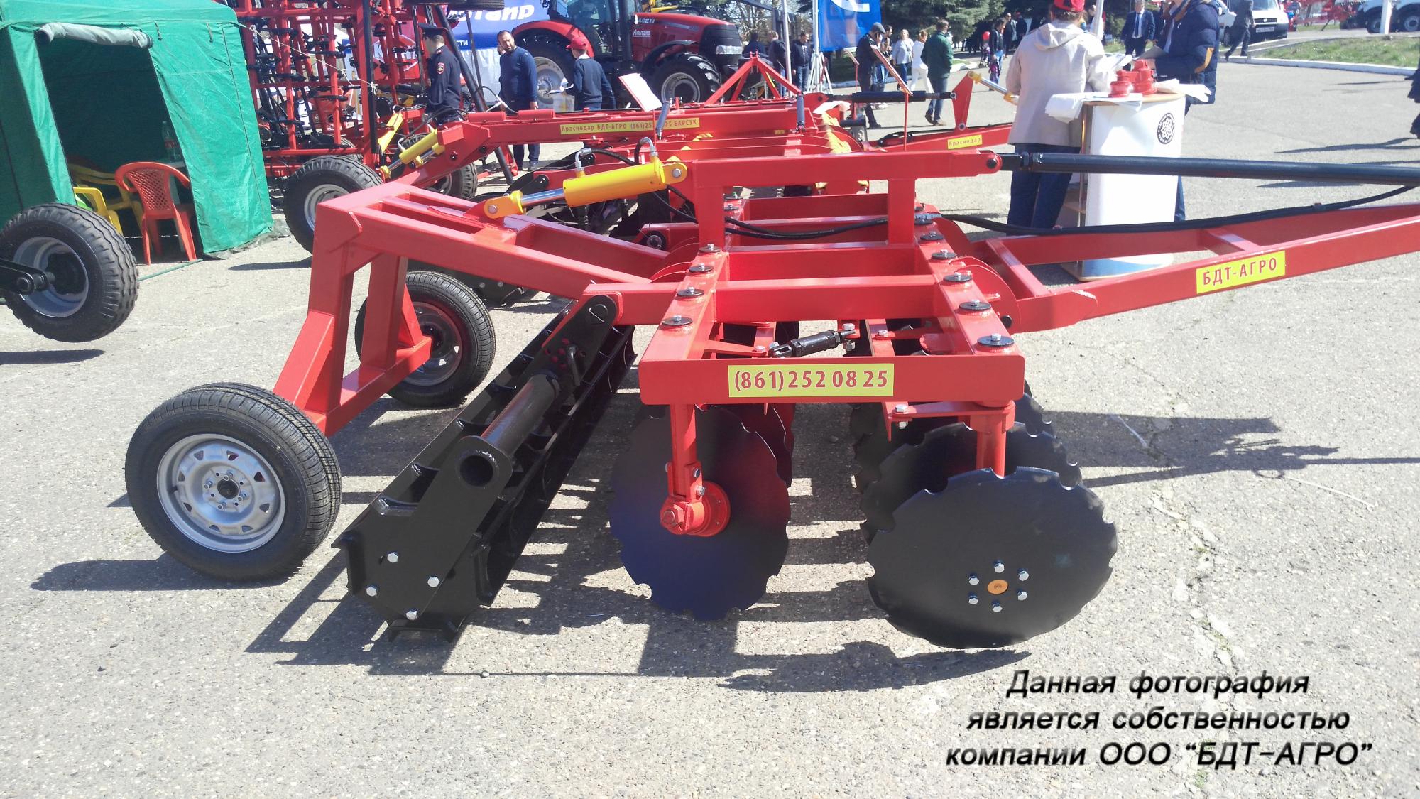 Двухрядная борона дисковая модернизированная БДМ с подшипниковым узлом внутри сферы диска, с дисками на индивидуальной стойке, с изменением угла атаки дисков синхронно в каждом ряду, предназначена для поверхностной обработки почвы на глубину до 15см, уничтожения сорняков и измельчения пожнивных остатков. За счет равномерного перемешивания земли с растительными остатками эффективно применение бороны дисковой на почвах подверженных ветровой и водной эрозии. Растительные остатки, равномерно перемешанные с верхним слоем почвы, защищают почву от выдувания и вымывания, улучшают воздушный обмен. При этом растительные остатки, находясь в земле, активно превращаются в перегной, повышая плодородие почвы.