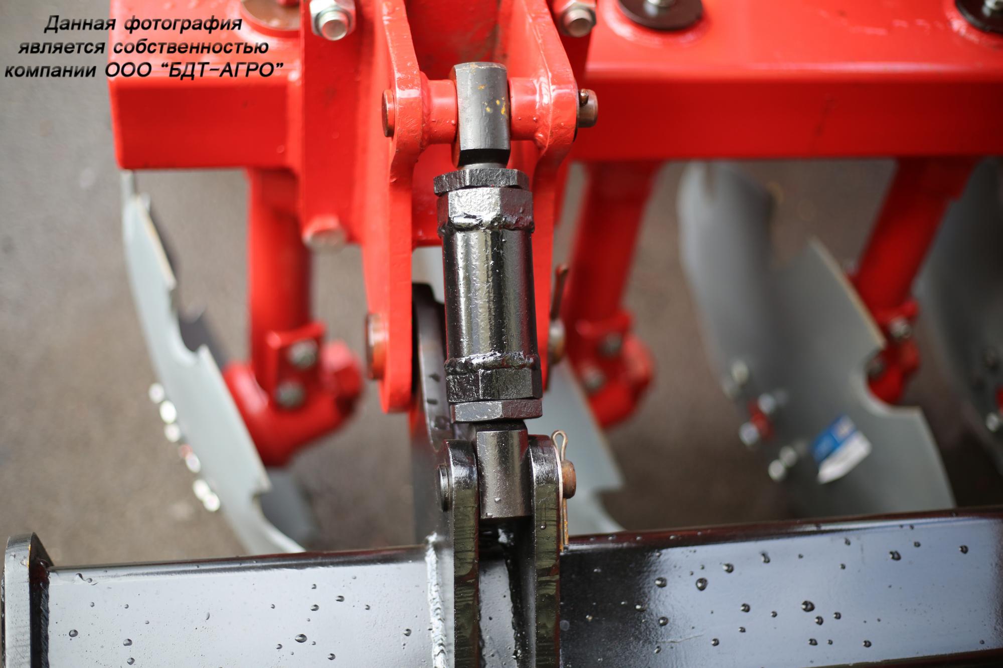 3. Все орудия серийно комплектуются механизмом регулировки глубины обработки (опорным катком). При этом регулировка катков, расположенных за шасси производится с помощью пружинных амортизаторов, что значительно снижает нагрузки на орудие при работе на неровном рельефе и при галопировании трактора.