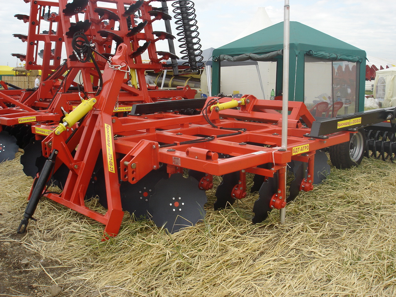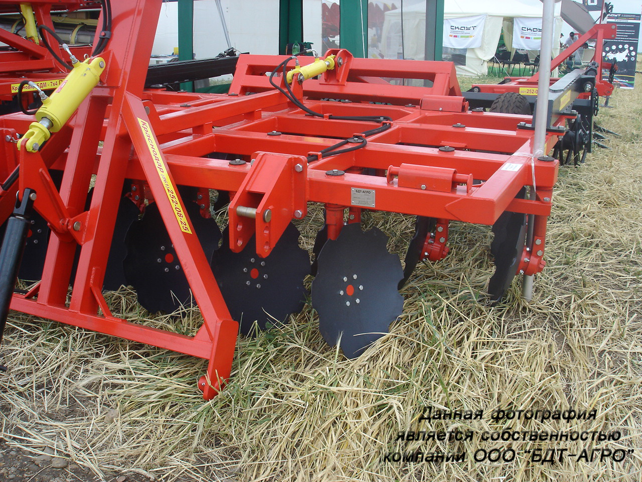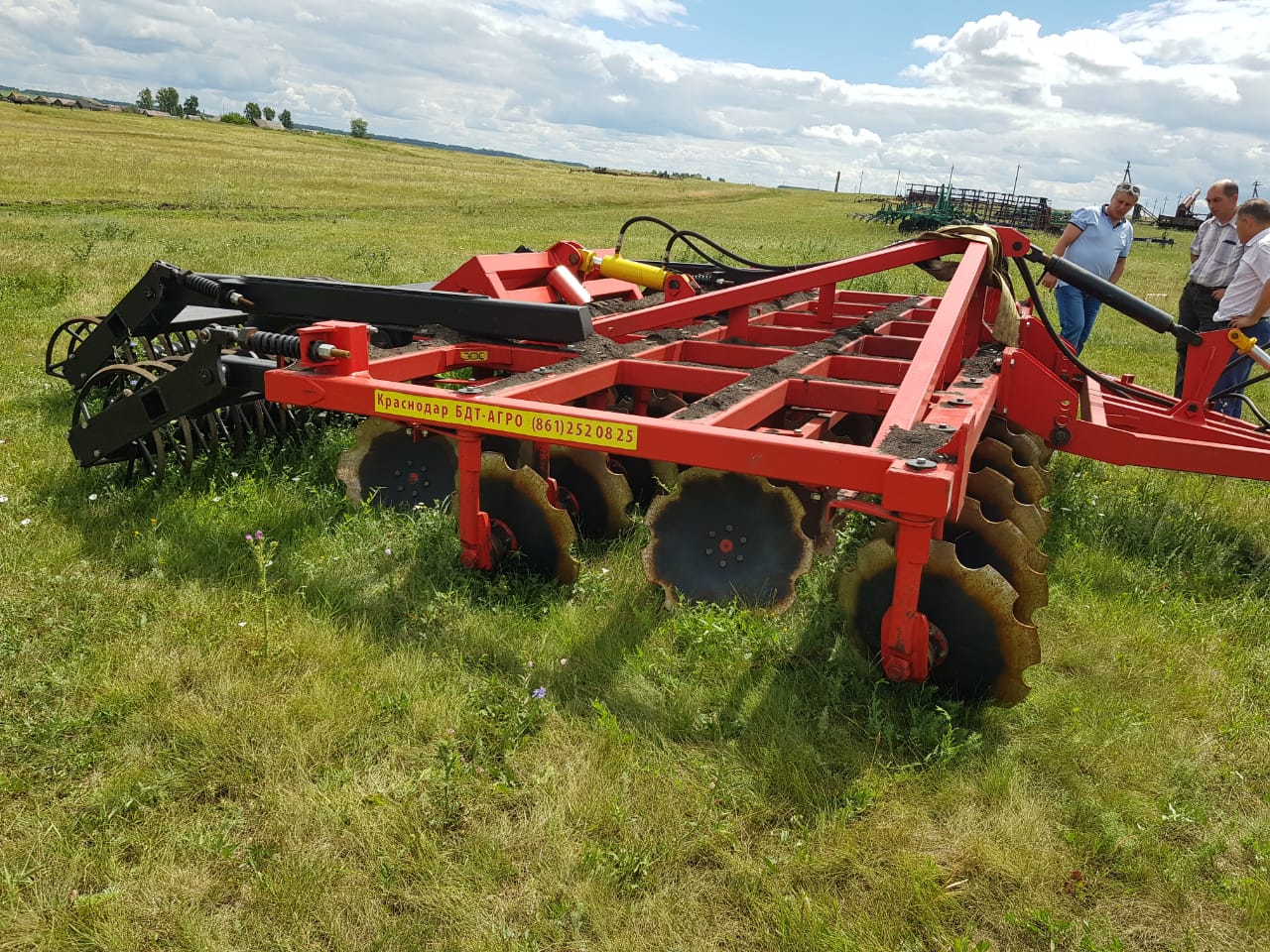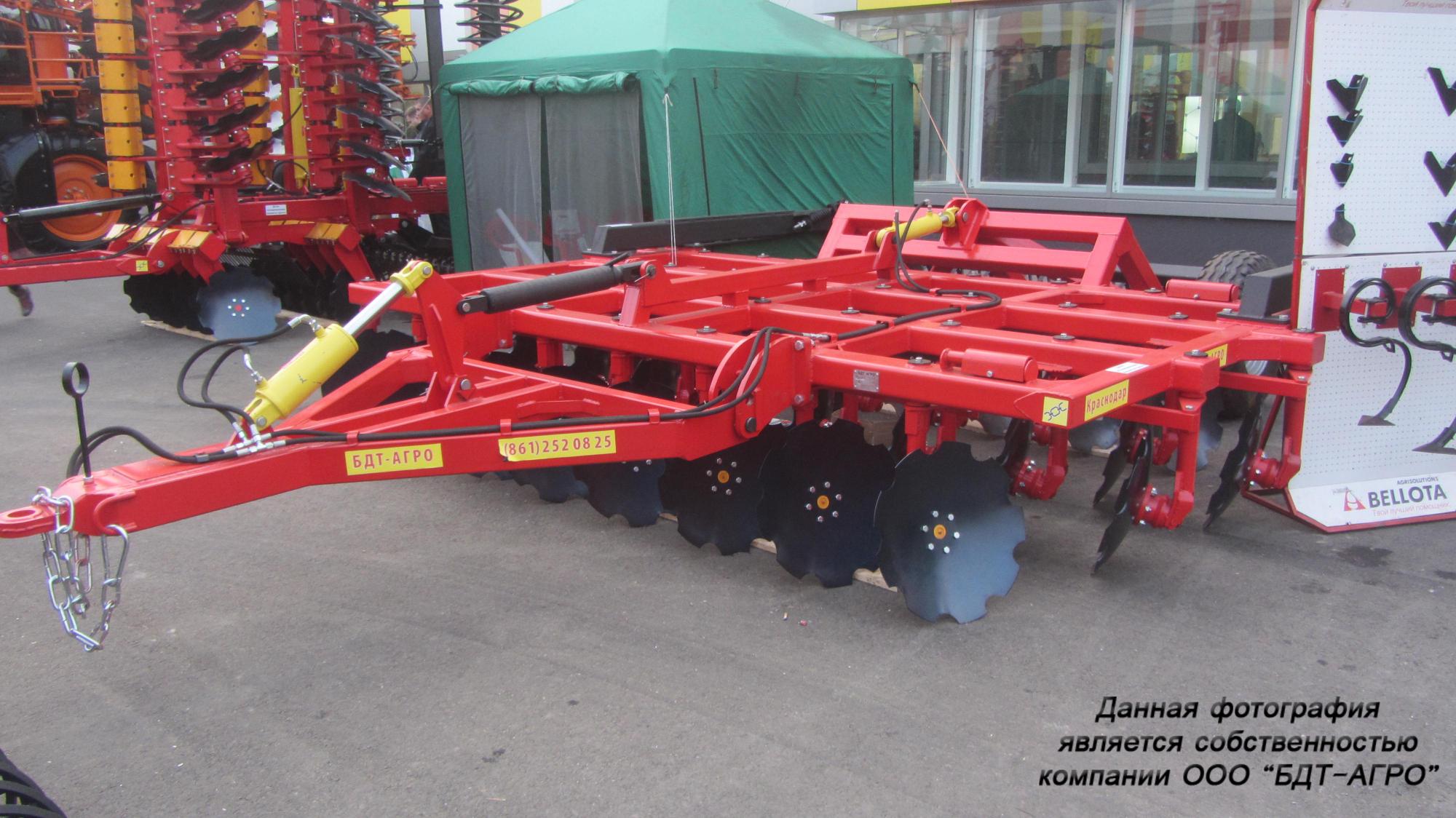 Четырехрядная борона дисковая модернизированная БДМ-А с подшипниковым узлом снаружи сферы диска, с дисками на индивидуальной стойке, с изменением угла атаки дисков синхронно в каждом ряду, предназначена для поверхностной обработки почвы на глубину до 17см, уничтожения сорняков и измельчения пожнивных остатков. За счет равномерного перемешивания земли с растительными остатками эффективно применение бороны дисковой на почвах подверженных ветровой и водной эрозии. Растительные остатки, равномерно перемешанные с верхним слоем почвы, защищают почву от выдувания и вымывания, улучшают воздушный обмен. При этом растительные остатки, находясь в земле, активно превращаются в перегной, повышая плодородие почвы.
