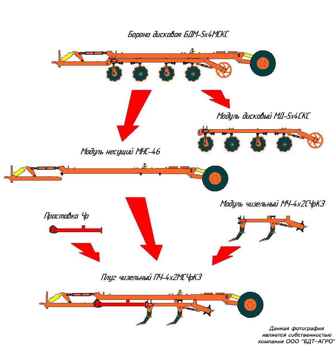 Отличия четырехрядных борон модульных БДМ-М от базовых четырехрядных борон БДМ:
