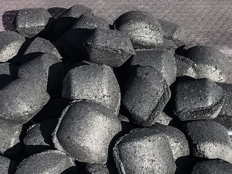 Производство брикетов осуществляется из березового угля, далее происходит дробление березового угля во фракцию до 6 мм согласно Европейскому качеству для брикета.