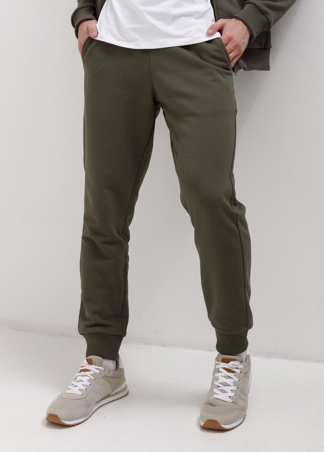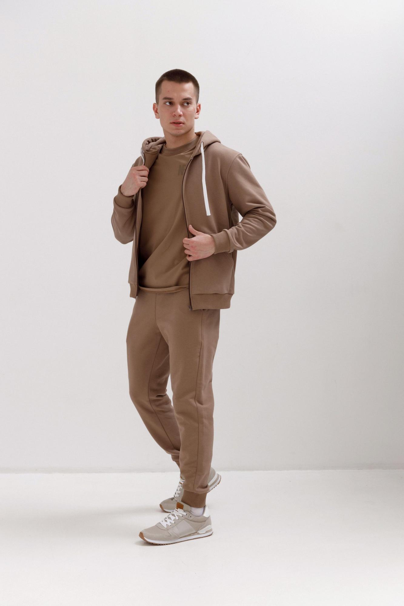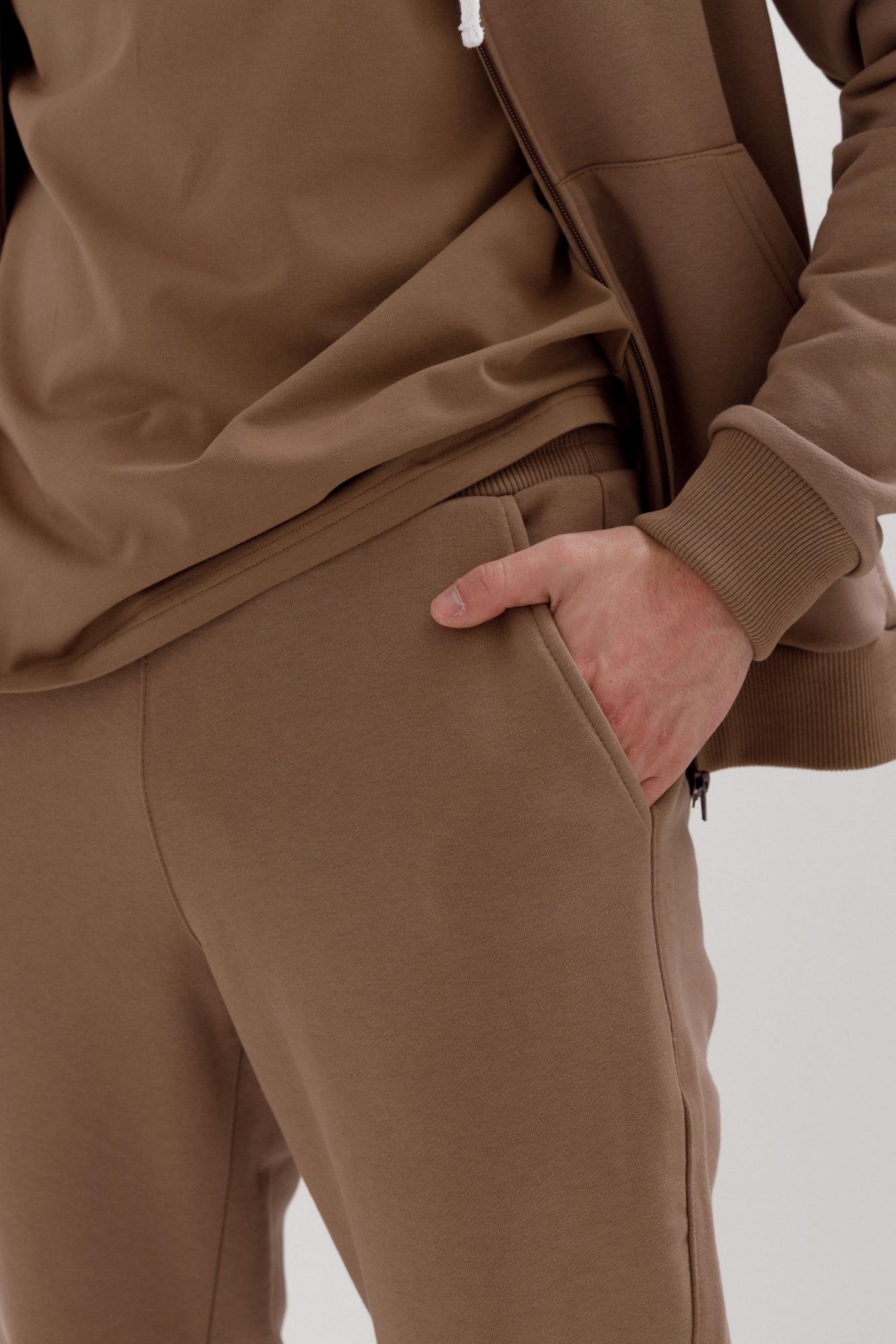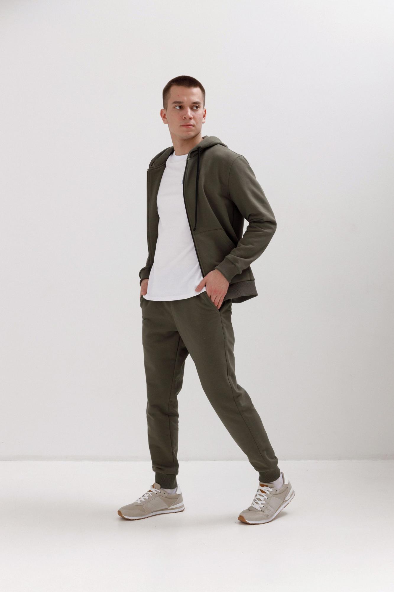 Брюки с манжетами по низу, манжеты из кашкорсе с эластаном. В поясе эластичная тесьма, кулиска отстрочена равномерно двумя параллельными строчками из кашкорсе. В кулиску вставлен шнур с застроченными концами. На передних половинках карманы с отделочной строчкой по входу в карман.